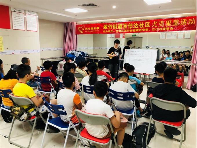 随着社区居民物质生活水平的提高,精神文化领域的要求也在提升。音乐能陶冶心情,培养耐性,陶冶情操,也能舒缓情绪。应社区居民的问需调查,翠达社区工作站百仕达社区居委会通过民生微实事为大家开展尤克里里活动课程。