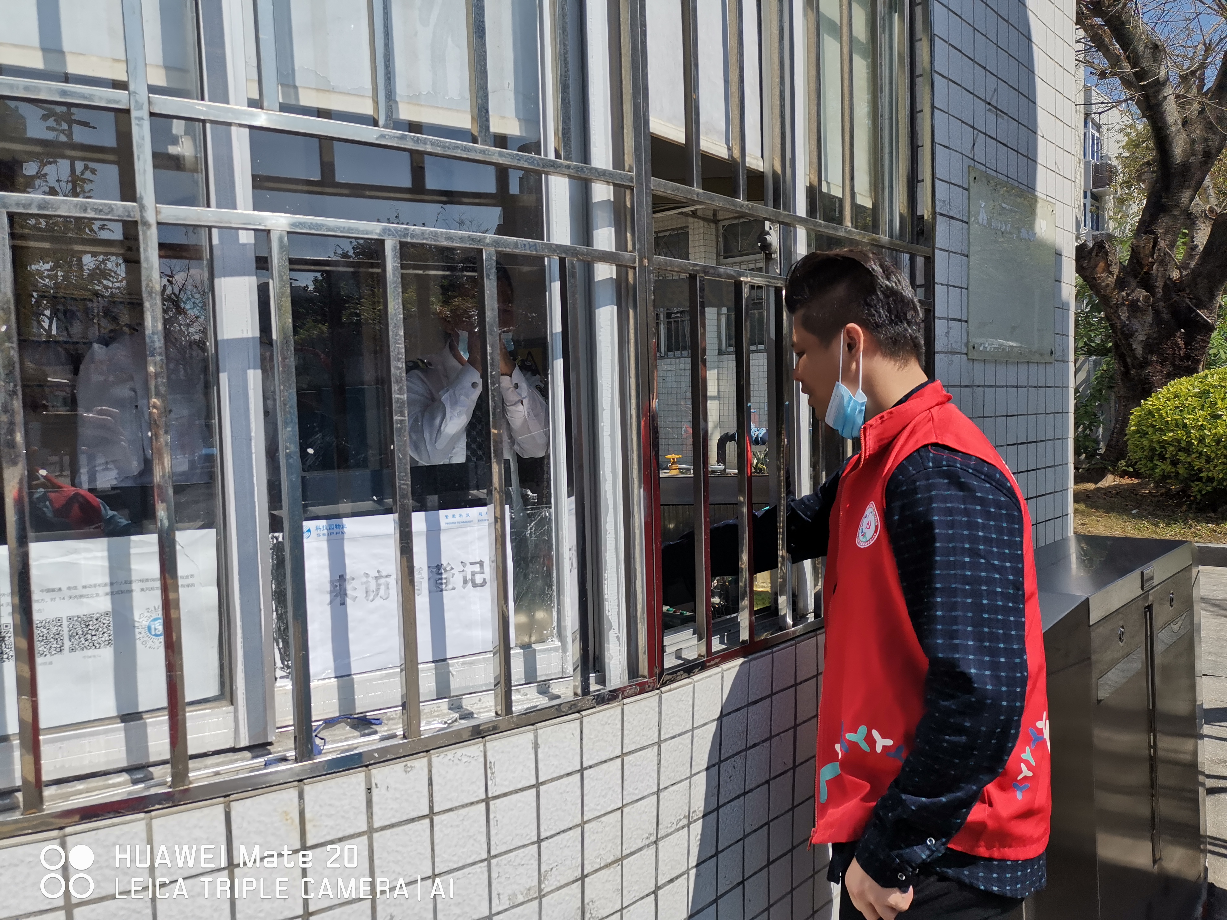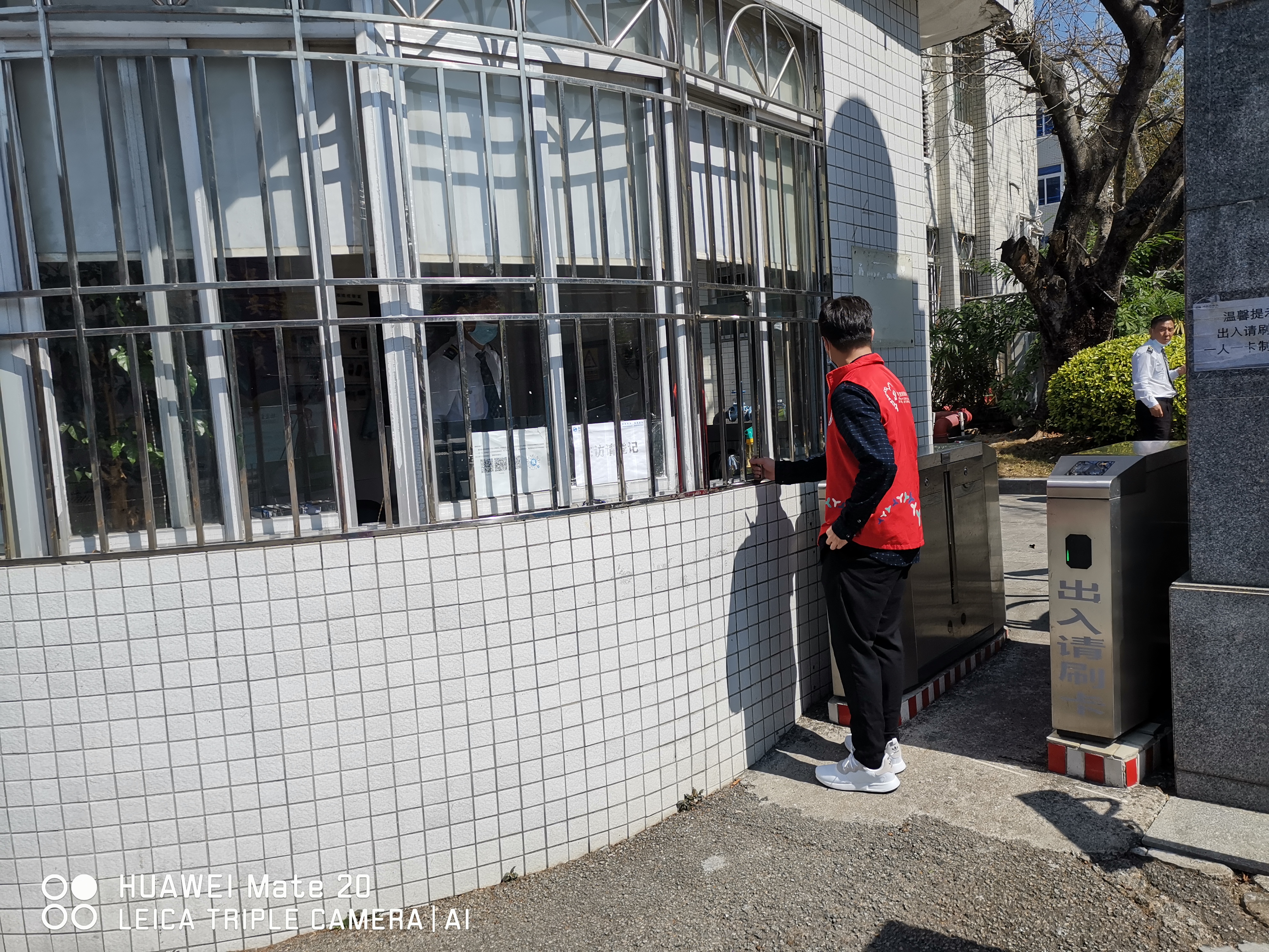 2021年2月12日,翠达社区工作人员对供电局防疫卡口工作进行巡查。