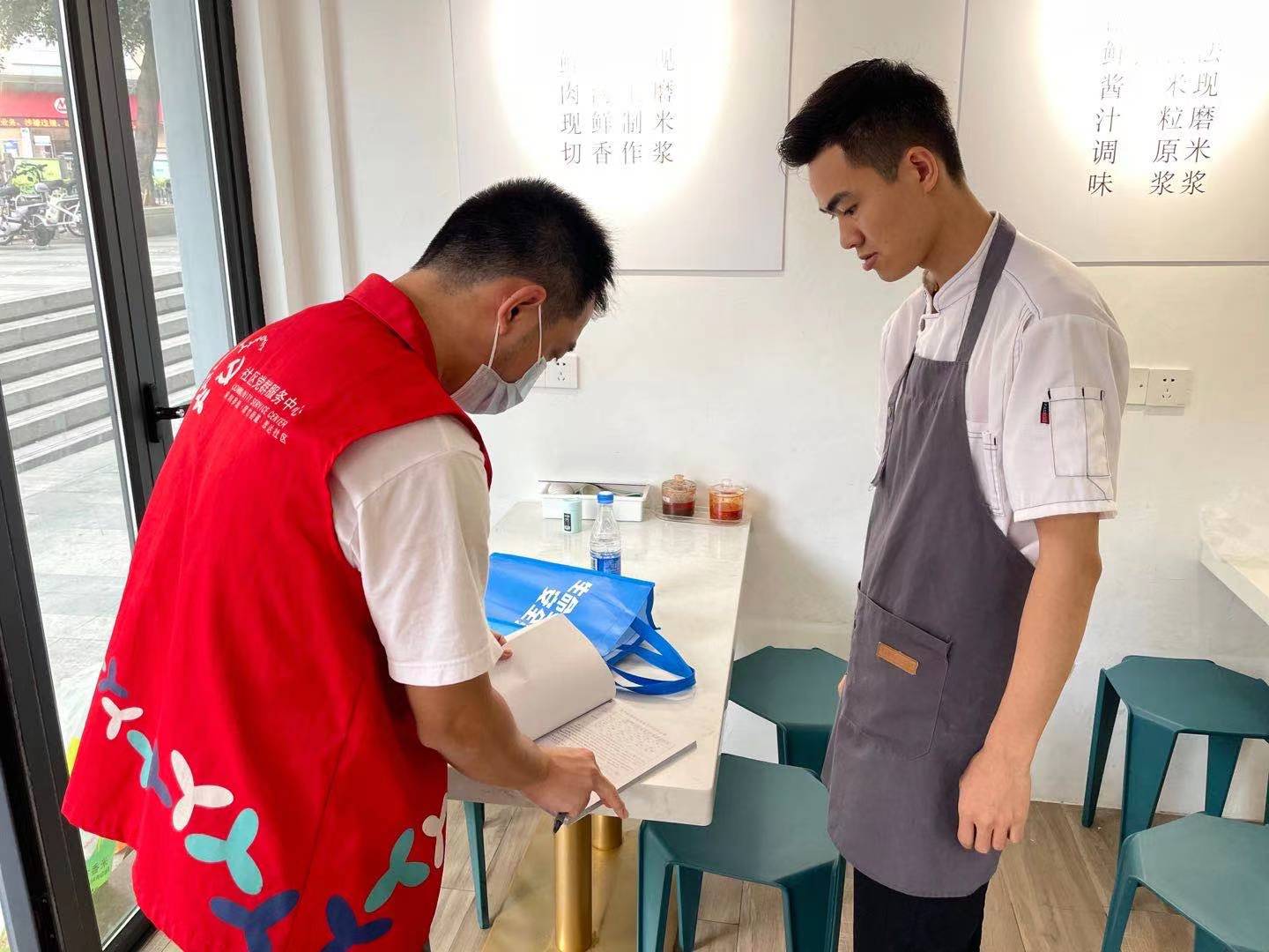 2021年4月8日下午,翠达社区工作人员到粤海新村门口粿条哥施工现场巡查。