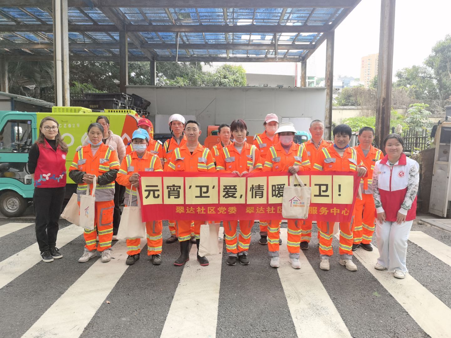 2月12日,在翠达社区党委的领导下,党群服务中心以“元宵‘卫’爱,情暖环卫!”为主题,开展了一场暖心活动。