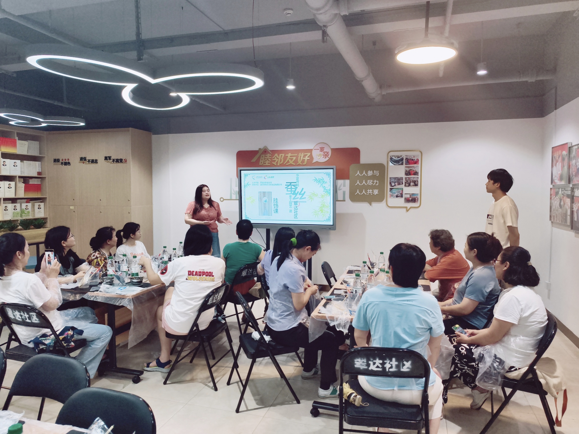 5月16日下午,翠达社区民生微实事活动——华夏传统蚕丝手工技艺进社区"蚕丝挂饰"制作精彩启幕,20名社区居民热情响应,踊跃参与,共同感受传统手工艺的独特魅力。