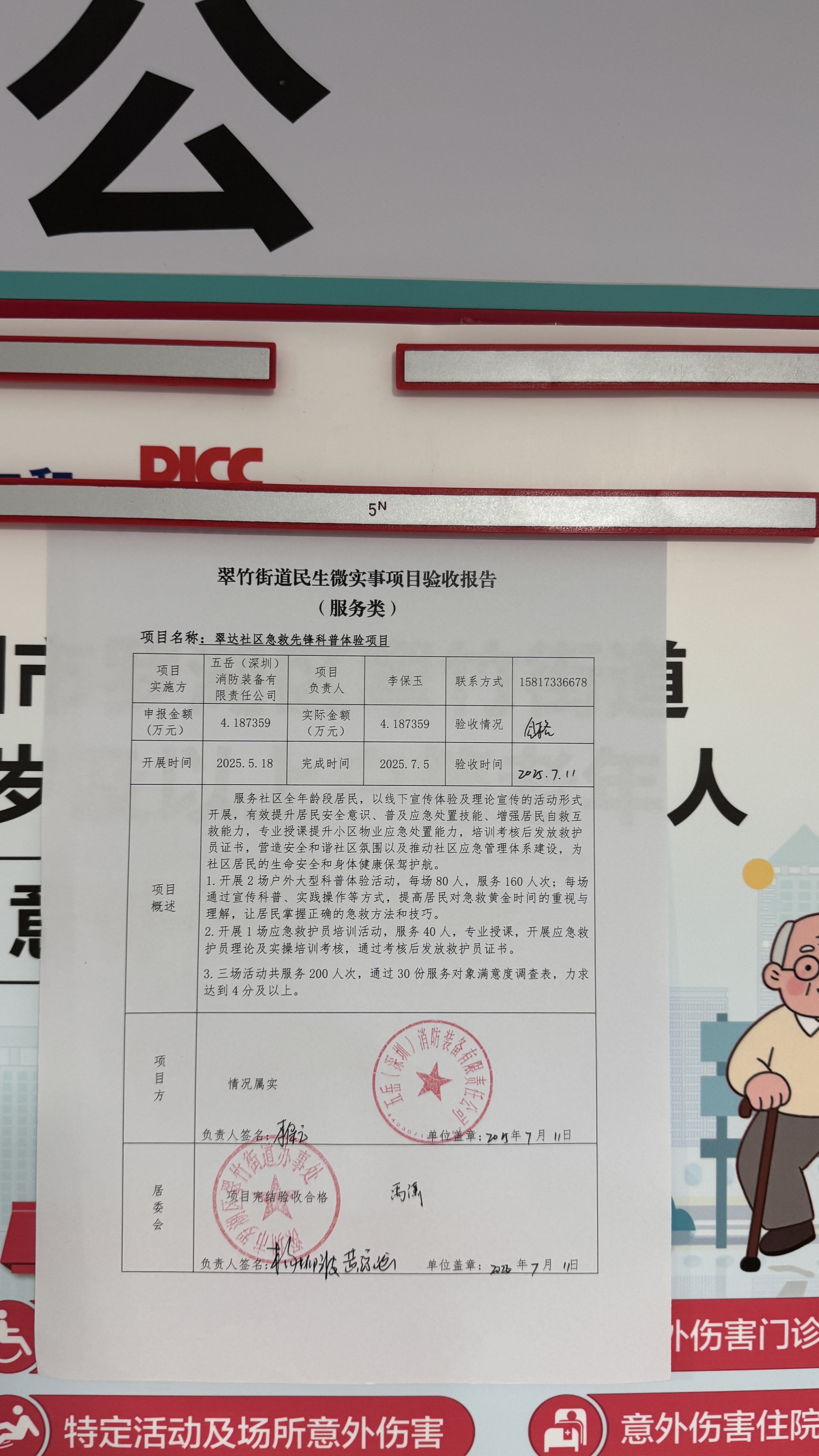 翠竹街道民生微实事项目验收报告(服务类)--翠达社区急救先锋科普体验项目
