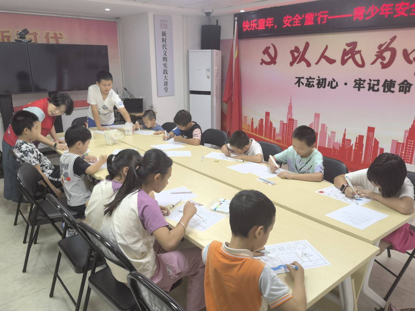 8月6日翠达社区党群服务中心开展了快乐童年,安全“童”行——青少年安全教育成长小组活动,在第二节活动里,社工带领着小朋友学习游泳安全知识,制作手抄报。