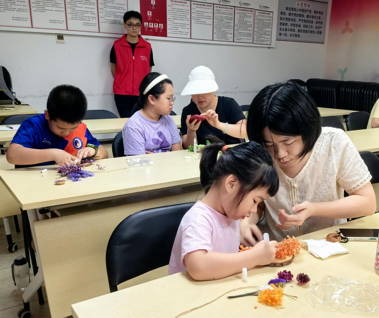 9月6日,教师节来临之际,翠达社区党群服务中心携手中国人寿保险股份有限公司举办了“师情花意”永生花亲子DIY工作坊。此次活动以花为媒介,不仅为社区亲子搭建了情感交流的平台,更让孩子们在动手创作的过程中,学会向教师表达敬意,让温暖与感恩在指尖绽放。