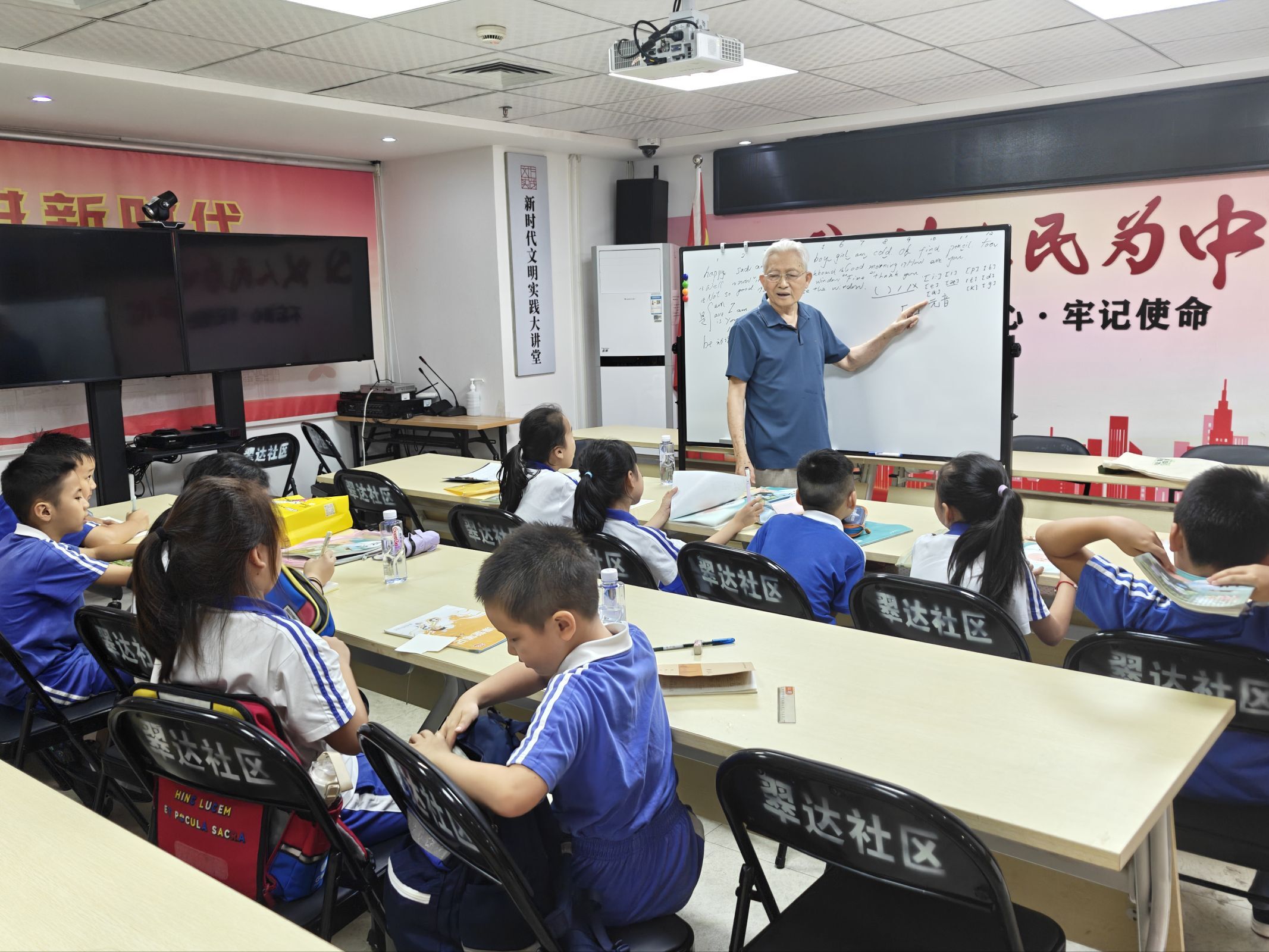 9月10日,今日我们迎来了教师节。在满载着对师者敬意的节日里,翠达社区如期开启了本周的英文公益课堂。讲台上76岁的公益教师廖进祥正一丝不苟地擦着黑板,他的脸上挂着一如往常般温和又坚定的笑容。