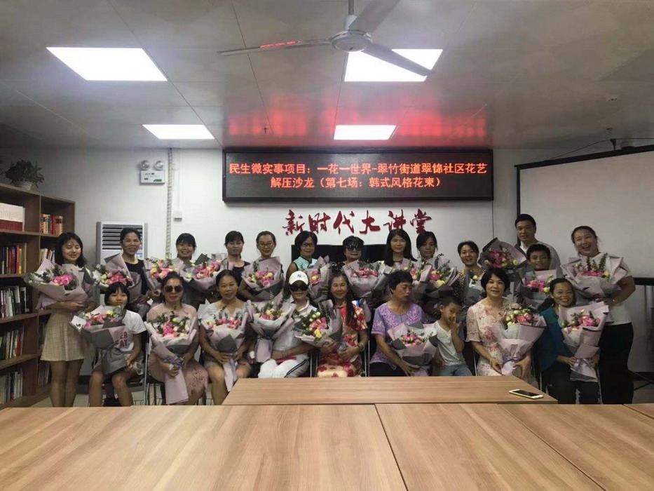 翠锦社区开展一花一世界花艺减压沙龙结业了