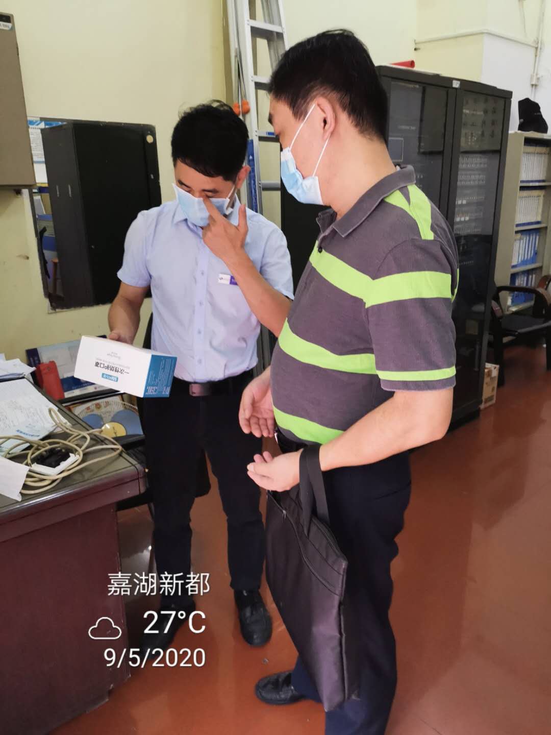 翠锦社区网格员为嘉湖新都管理处派发口罩