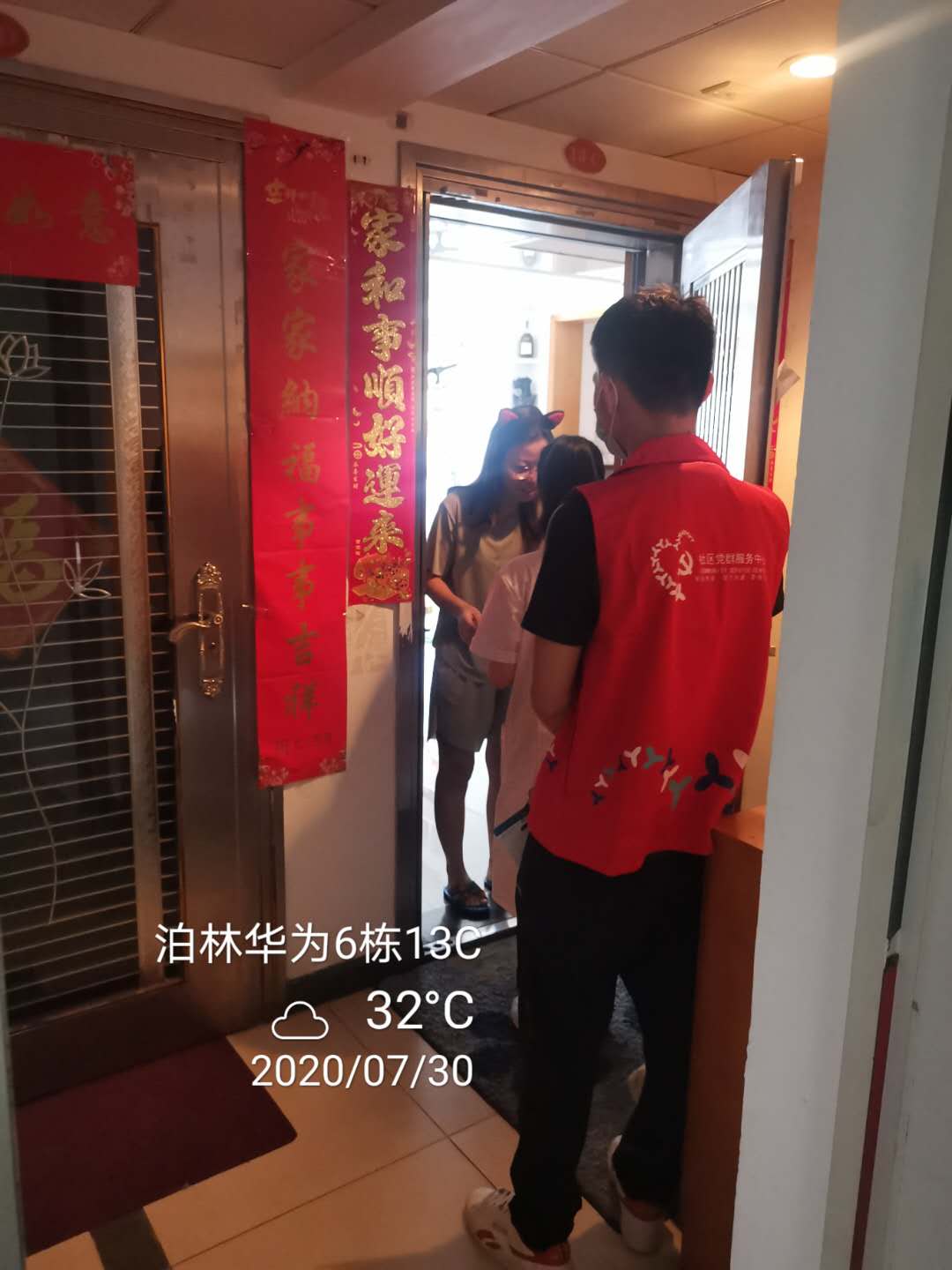 翠锦社区三位一体工作人员探访泊林花园居家隔离住户