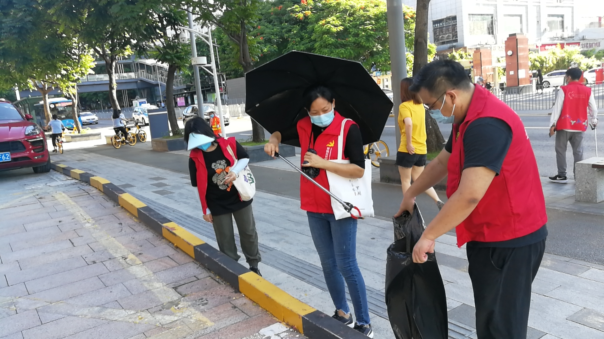 志愿者清理路面垃圾