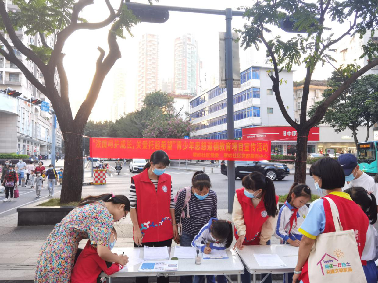 2020年11月25日,在翠岭社区党委的支持下,翠岭社区党群服务中心开展了“浓情呵护成长,关爱托起希望”青少年思想道德教育项目宣传活动,吸引了众多居民的参与。