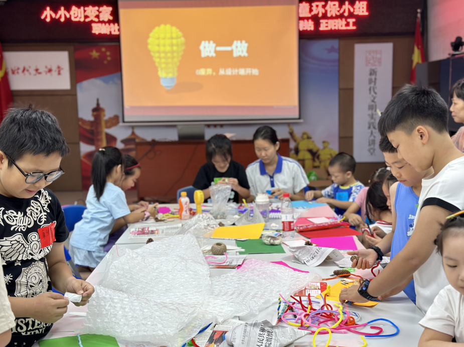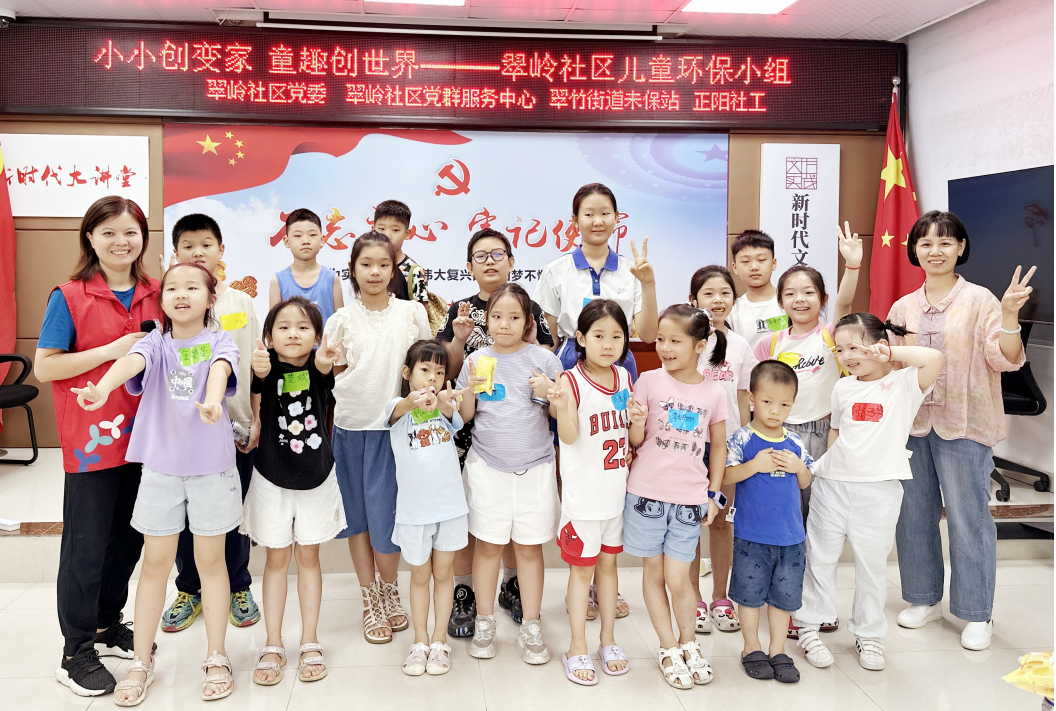 罗湖家园网讯:为了丰富社区儿童的暑期生活,提高儿童环境保护意识和可持续发展理念,同时促进儿童之间的人际交往和关系融合,7月16日至7月19日,在翠岭社区党委的指导下,翠岭社区党群服务中心联合翠竹街道未保站、正阳社工机构开展了小小创变家 童趣创世界——翠岭社区儿童环保小组,共有75人次参与。