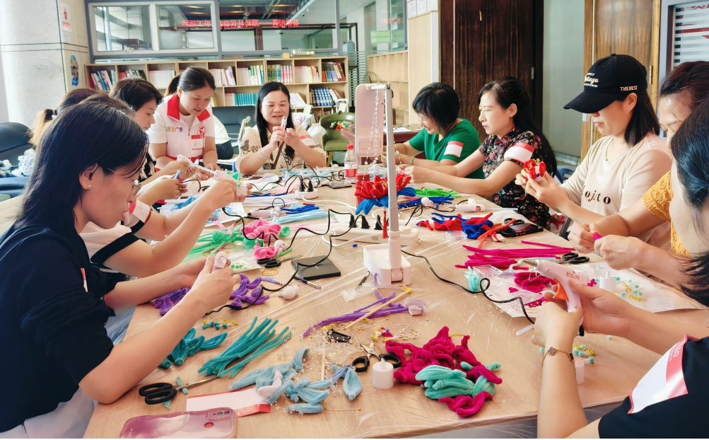 该活动邀请全职妈妈项目社区主理人夏沁梅主讲。活动伊始,社工先组织参与者们做自我介绍,促进大家互相了解。再由夏老师组织大家一起做手工。夏教师先详细讲解荷花灯的制作流程,参与者们再跟着夏老师的示范指导开始制作,一根根扭扭棒在大家手中逐渐变成了一盏盏精美的荷花灯,大家边做边聊,孩子、家庭、爱好等话题越聊越起劲,活动现场洋溢着欢声笑语。参与者们纷纷表示,大家围在一起做做手工,说说笑笑,真好。