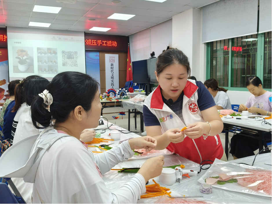 罗湖家园网讯:为了守护青少年的身心健康,科学认识且有效预防网络沉迷,促进亲子关系融洽,9月19日上午,翠岭社区党群服务中心联合翠竹街道心理服务站、全职妈妈项目一起开展“做智慧妈妈 拥抱美好生活”翠岭社区妇女减压手工活动,共有20位女性居民参与。