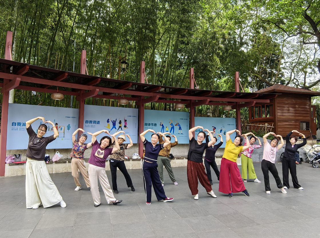 罗湖家园网讯:近日,翠岭社区联合社区老年人协会开展“晨曦起舞 健康同行”翠岭社区舞蹈课堂,本活动由翠岭社区长青老龄大学老师带领居民学习舞蹈,旨在通过轻松愉悦的广场舞形式,让居民在清晨的阳光下享受运动乐趣,感受舞蹈的魅力,共吸引15名社区居民参与。