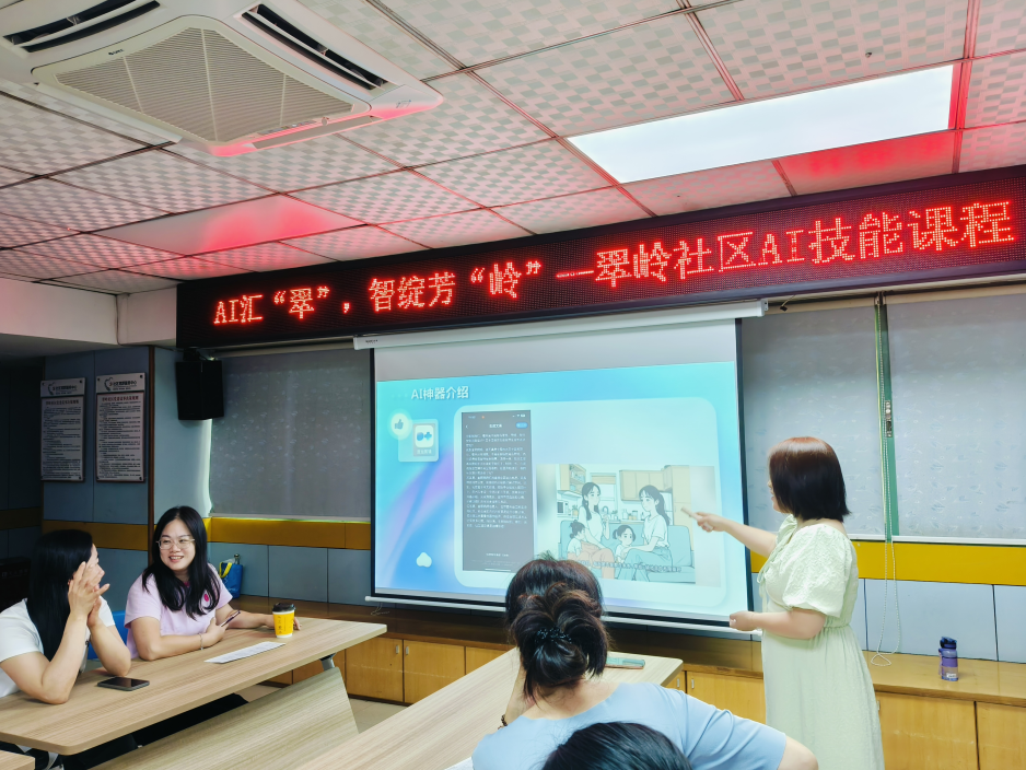 罗湖家园网讯:近日,翠岭社区党群服务中心联合罗湖区妇联支持的全职妈妈项目,在翠岭社区活动室开展AI汇“翠”,智绽芳“岭”——翠岭社区AI技能课程,吸引16位女性居民参与。