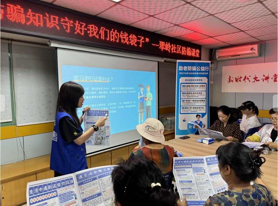 罗湖家园网讯:2025年5月13日下午,翠岭社区新时代文明实践站社工在翠岭社区开展了“手机轻松就医识别健康骗局”--翠岭社区健康课堂,本次活动通过真实案例的分享,加强社区居民安全防范意识,避免电信诈骗、网络诈骗等侵害。