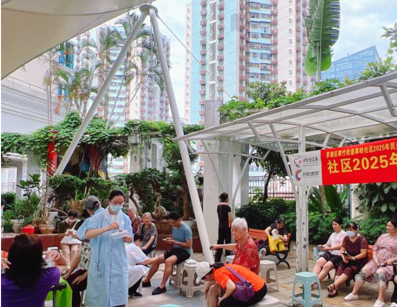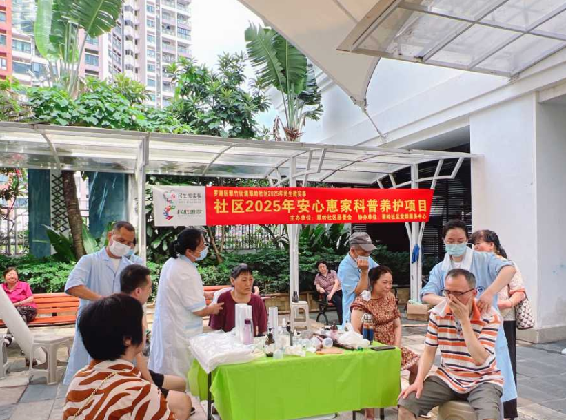 罗湖家园网讯:近日,翠岭社区居委会在翡翠星空小区架空层精心策划了一场民生微实事“头部按摩放松体验与头皮护理知识科普”主题养护活动。活动通过专业头皮检测、舒压按摩体验及个性化健康咨询,为50多位社区居民送上一场直达“头等”要事的健康服务盛宴。