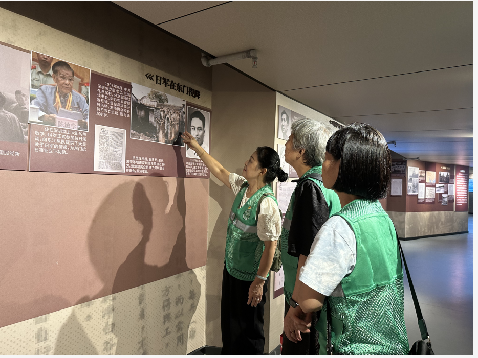 本次活动社工组织了社区志愿骨干参观东门叶挺将军红色纪念基地。活动中,志愿者骨干刘惠芳化身为讲解员,在她的带领下,志愿者们依次参观了展馆内的珍贵图片,文献资料及实物陈列,大家认真聆听叶挺将军抗日的革命故事,深切感悟他爱国信仰与崇高气节。在互动分享环节中,社工和志愿者们围绕革命先辈的爱国精神展开讨论,大家表示此之行不仅加深了对叶挺将军革命事迹的了解,还体会到幸福生活的来之不易。