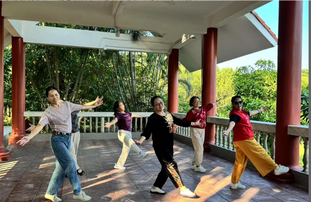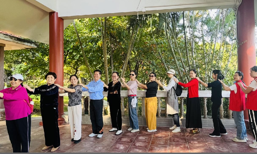下午 14 时 30 分,大家来到大屏嶂森林公园。大屏嶂森林公园植被茂密、空气清新,是亲近自然、放松身心的好去处。社工带领志愿者玩转 “桃花朵朵开”,欢声笑语此起彼伏;随后的放松互动,让彼此的暖意悄然传递。紧接着,志愿者团队即兴献上舞蹈,灵动舞姿点燃现场氛围,不仅舒缓了徒步疲惫,更将团队的活力与凝聚力展现得淋漓尽致。在公园的观景平台,大家停下脚步,远眺周边的美景,享受着大自然带来的宁静与惬意,疲惫的身心得到了充分的放松。