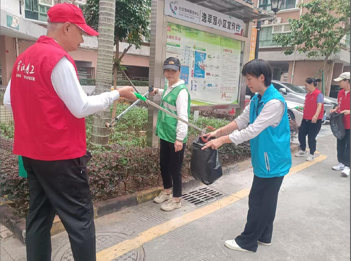 当天活动在逸翠园小区内展开。尽管秋风微凉,但6名社区志愿者的服务热情却丝毫不减。他们身着统一的志愿者服装,手持夹子、垃圾袋等清洁工具,化身“社区美容师”,深入小区的绿化带、休闲广场和主干道等公共区域。志愿者们分工明确,配合默契,有的负责用夹子捡拾隐匿在草丛中的烟头、纸屑,有的则负责收集和清运垃圾。他们不放过任何一个卫生死角,细致认真的身影成了小区里一道亮丽的风景线。经过志愿者们一上午的辛勤劳动,逸翠园小区的环境卫生面貌得到了显著改善,公共区域变得更加整洁靓丽。此次活动不仅美化了居民的居住环境,更以实际行动向社区居民宣传了环保理念,激发了大家共建共享美好家园的责任感。