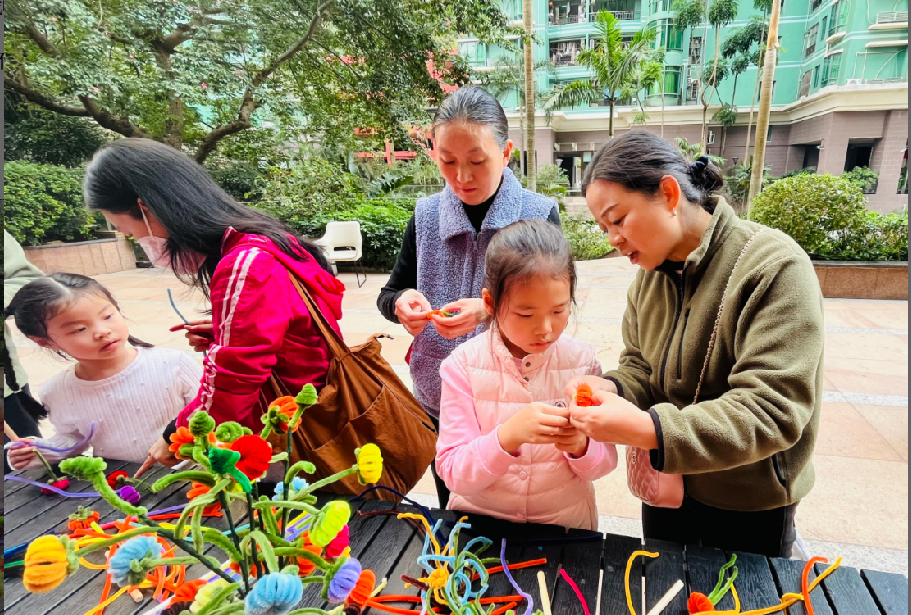 翠岭社区“迎新趣时光·亲子户外手作派对”圆满落幕 投壶雅趣碰上扭扭棒创意 亲子共绘新春如意画卷