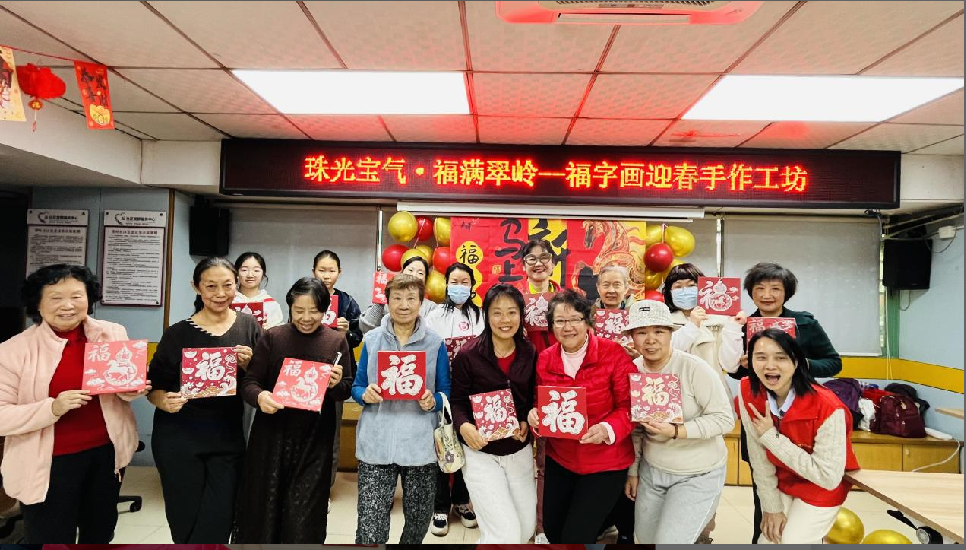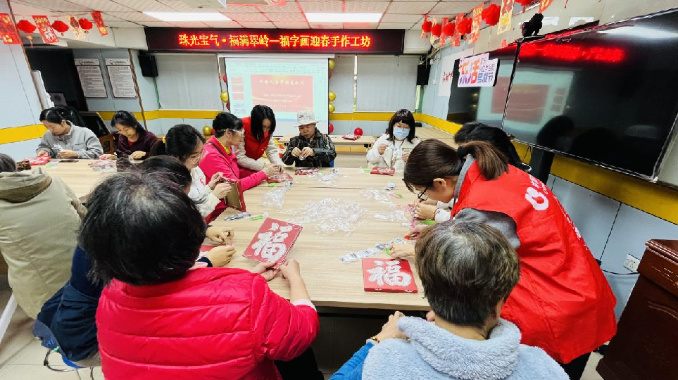 罗湖家园网讯:新春佳节将至,翠岭社区以“党建引领+文化传承+社区共建”为核心,于2月9日成功举办“珠光宝气·福满翠岭——福字画迎春手作工坊”活动。活动通过“珍珠福画”创意手作共吸引20名居民参与,将传统年俗与现代艺术融合,为社区注入浓浓年味与温情。