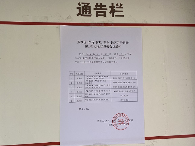 罗湖区翠竹街道翠宁社区关于召开第六次社区党委会议通知