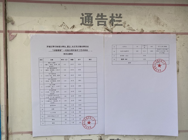 罗湖区翠竹街道办事处翠宁社区民生微实事活动“旧物青春”——垃圾分类环保手工艺术活动项目决算表