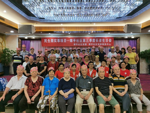 7月24日下午15:00在领南汇酒楼迎来了由翠平社区党委主办的民生微实事项目之2019年第三季度长者生日会。活动吸引了60位社区长者参加。