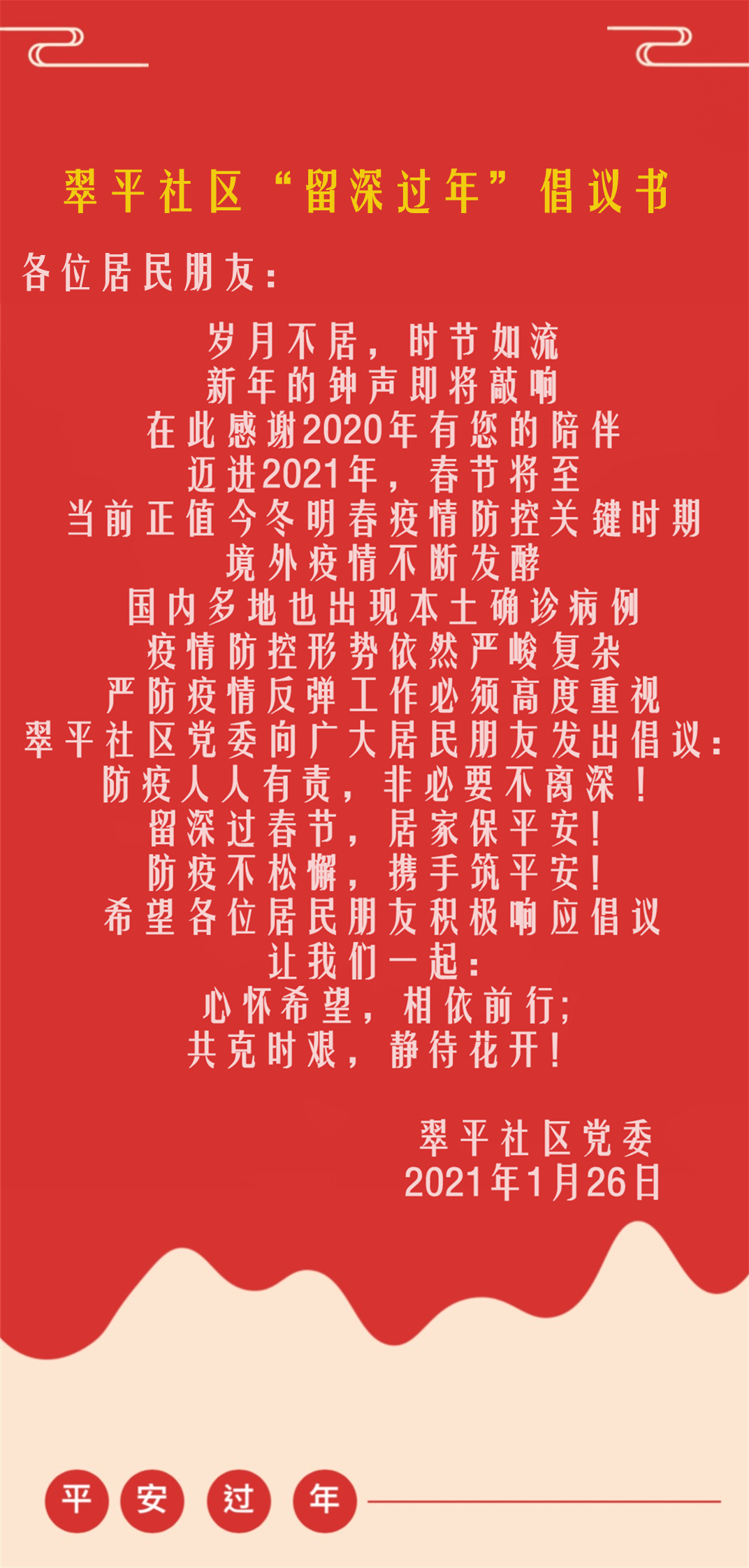 翠平社区“留深过年”倡议书