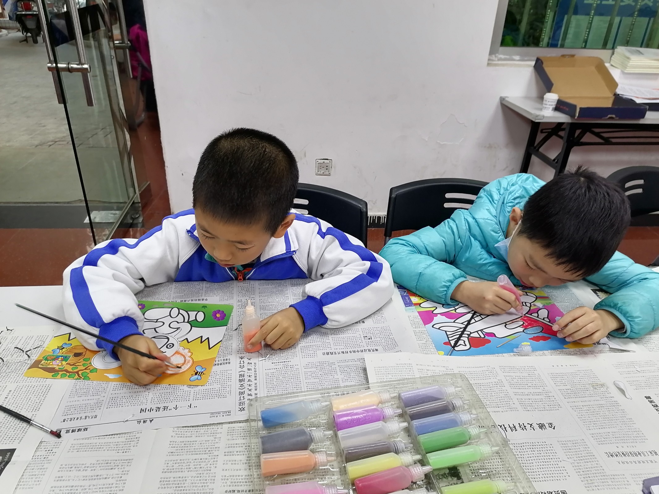 活动伊始,社工向社区儿童介绍了四点半课堂服务内容,并对本学期在四点半课堂表现优秀、认真完成作业的学员进行了表扬。接着,社工向孩子们讲解沙画制作的步骤及需要注意的事项,把物资发给孩子们以后,大家迫不及待制作起来,很快可爱的小鹿、美丽的少女、飞奔的火车映入眼帘。