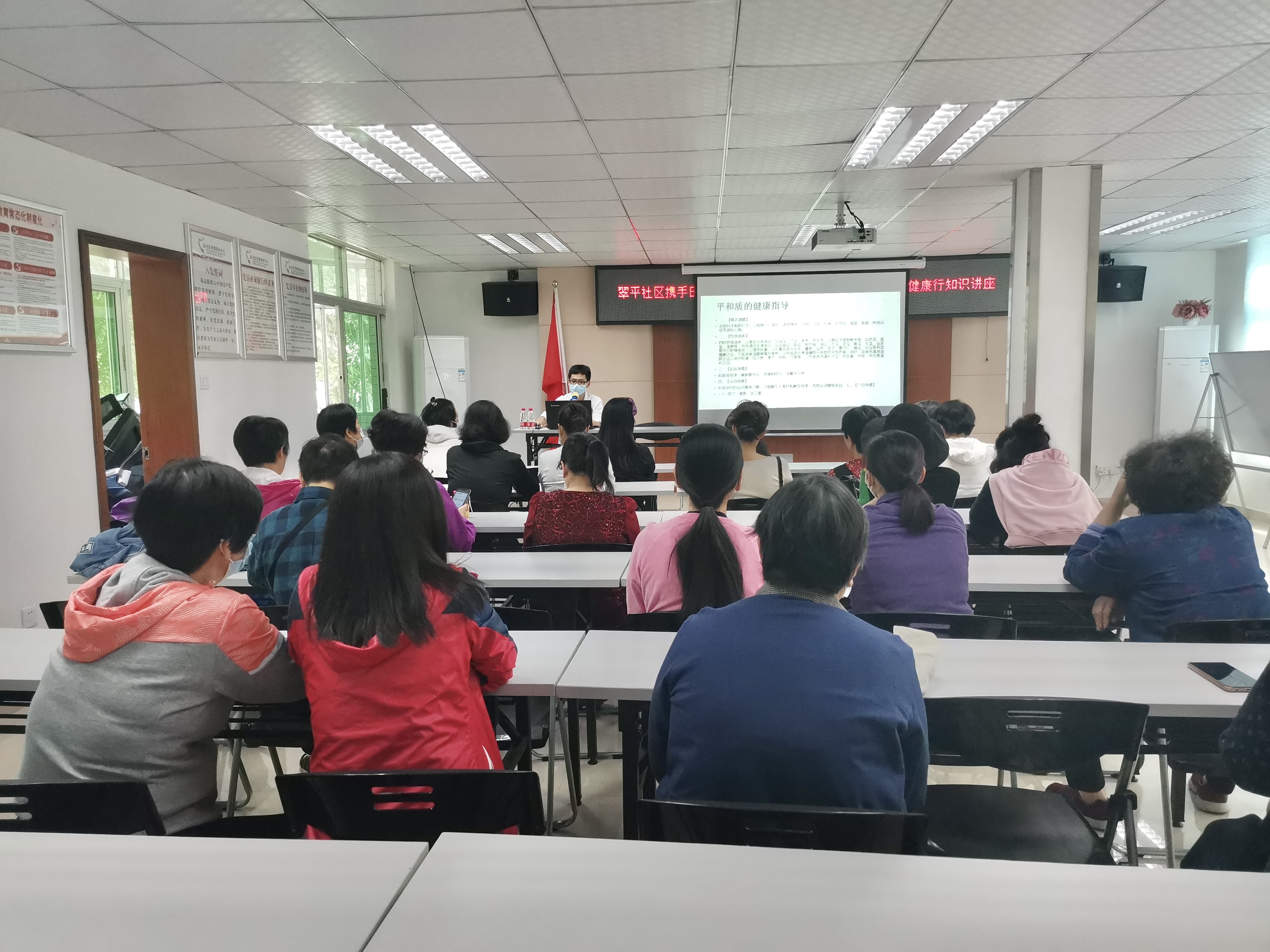 为发挥好中医药文化在养生保健方面的优势,提升翠平社区居民健康水平,减少常见疾病发生,2021年3月24日下午,在翠平社区党委的支持下,翠平社区党群服务中心特邀田贝社康中医科吴耿旭到社区,开展中医药知识健康讲座,内容包括预防疾病、治疗调理、运动调理等,讲座吸引23位社区居民聆听。