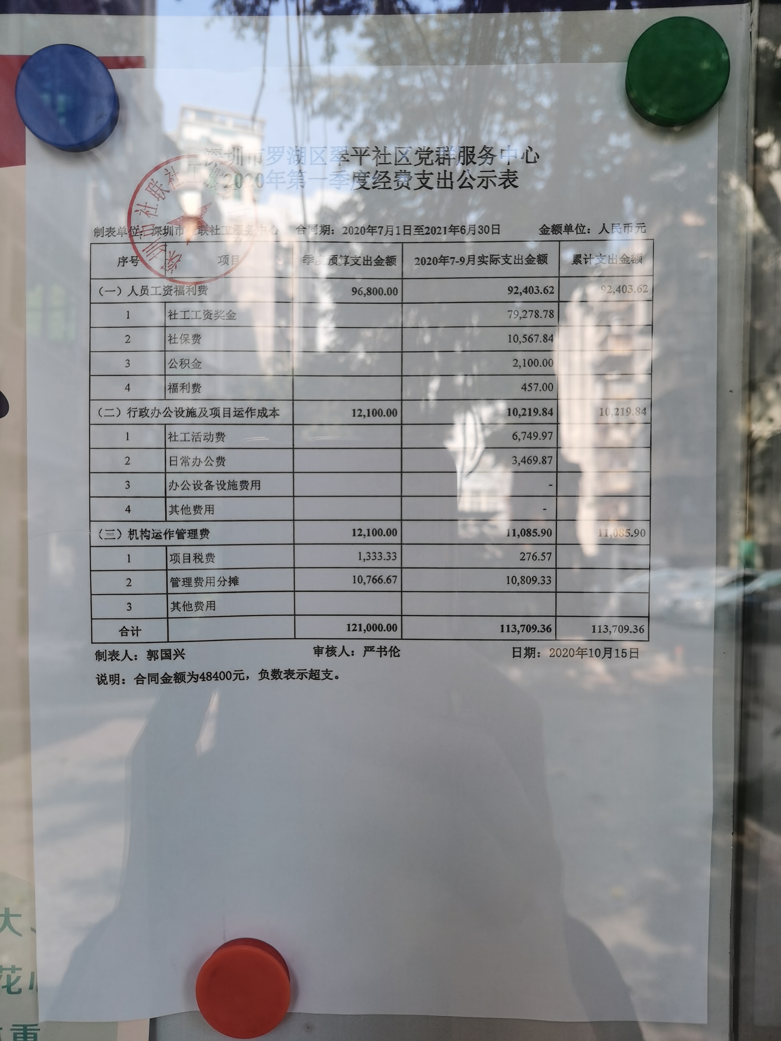 深圳市罗湖区翠平社区党群服务中心2020年第一季度经费支出公示表