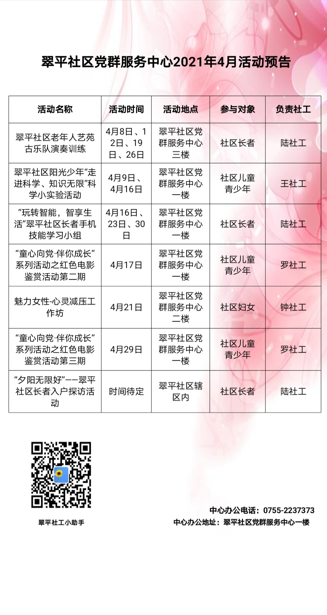 翠平社区党群服务中心2021年4月活动预告