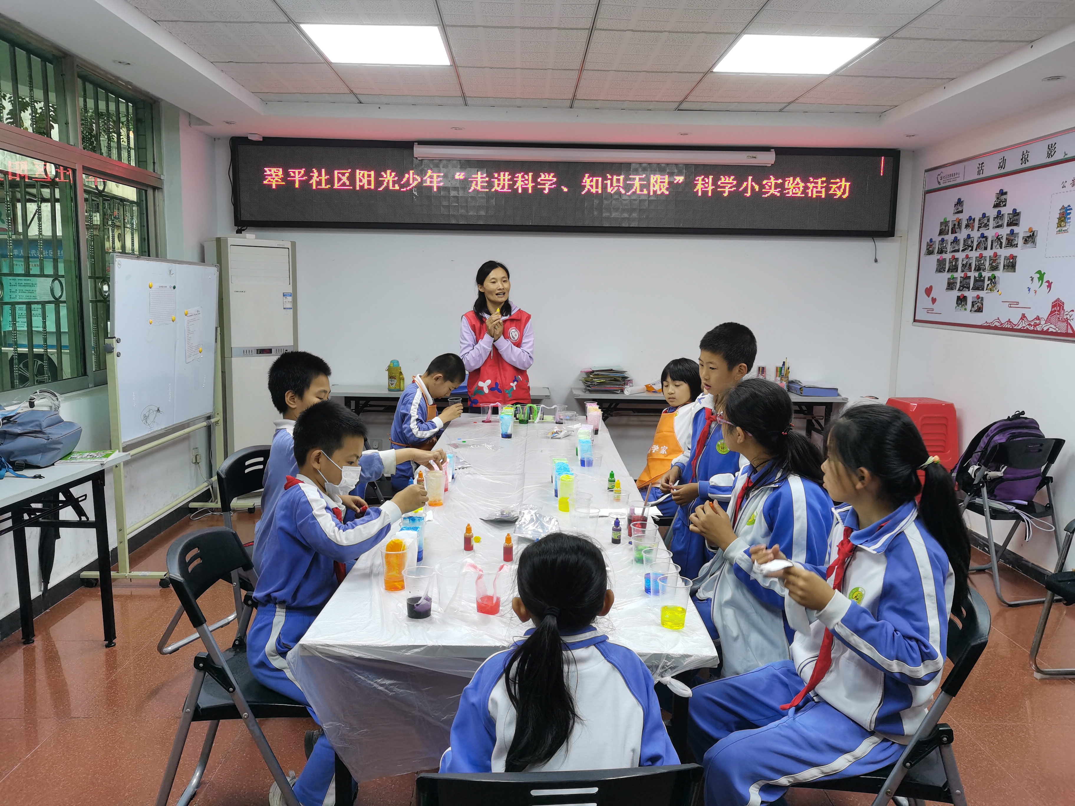 为了丰富社区儿童的课余生活,激发社区儿童爱科学、学科学的动力。2021年4月9日下午,在翠平社区党委的支持下,翠平社区党群服务中心社工开展“走进科学、知识无限”科学小实验活动。