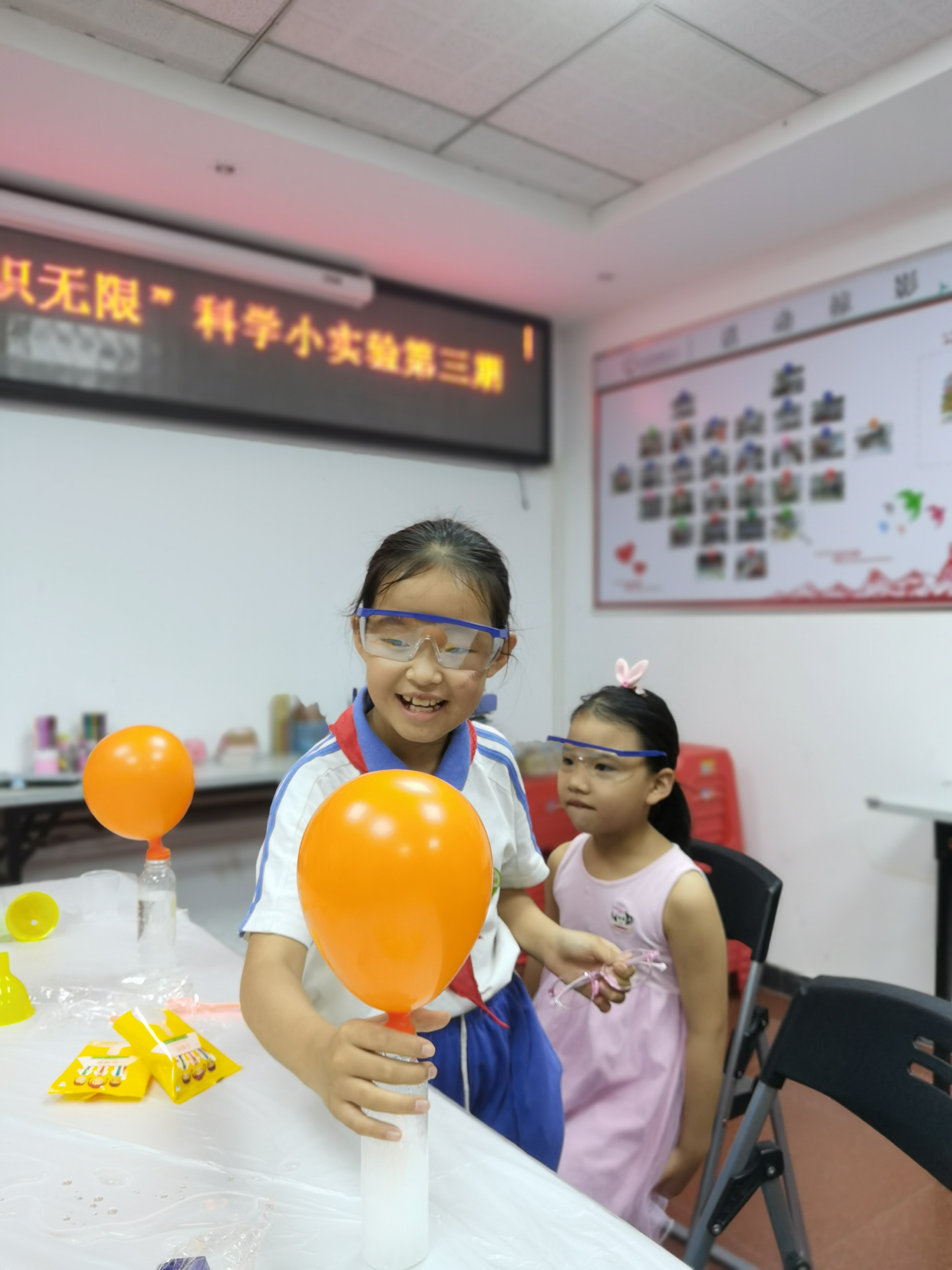 活动现场,社工首先和参加活动的社区儿童讲解了,本节实验的“主角”分别是柠檬酸和小苏打,这两种物质放在一起会发生酸碱反应,会产生大量的二氧化碳气体,二氧化碳气体越聚越多气球就会被吹大。社工讲解完后,把物资发给孩子们,孩子们迫不及待的开始做实验,目不转睛的看着,柠檬酸和小苏打发生化学反应后冒着大量的旗袍,并发出滋滋的声音,很快气球一个个慢慢变大了,孩子们欢声雀跃的鼓起手掌。参加活动的黄同学说:“太棒了,原来酸性物质和碱性物质会发生这样的反应,以后在生活我会认真的观察”。