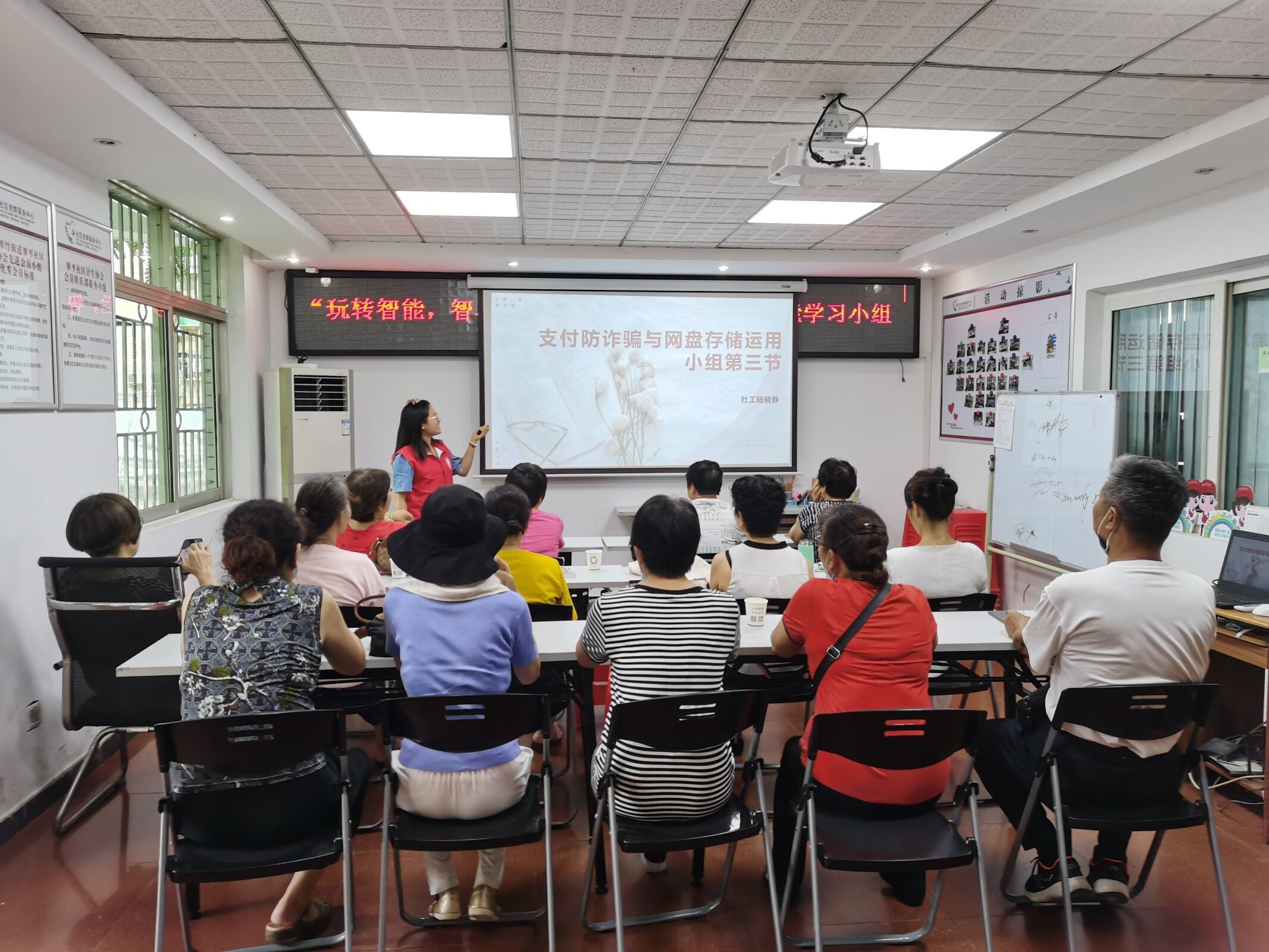 第三节和第四节主要围绕支付防诈骗与网盘存储运用、手机视频编辑与美化来展开,社工结合PPT和现场演示,第三节主要教授了组员们如何保证微信支付防诈骗,如何处理微信存储空间,如何处理手机存储空间,如何安装注册国家反诈中心APP等等;第四节主要教授他们如何群接龙、如何发手机原图、新进群如何修改昵称以及如何用手机发抖音视频等等。长者们学习完后,表示参加这次小组后,以前很多手机上不懂操作的,通过小组学会了。