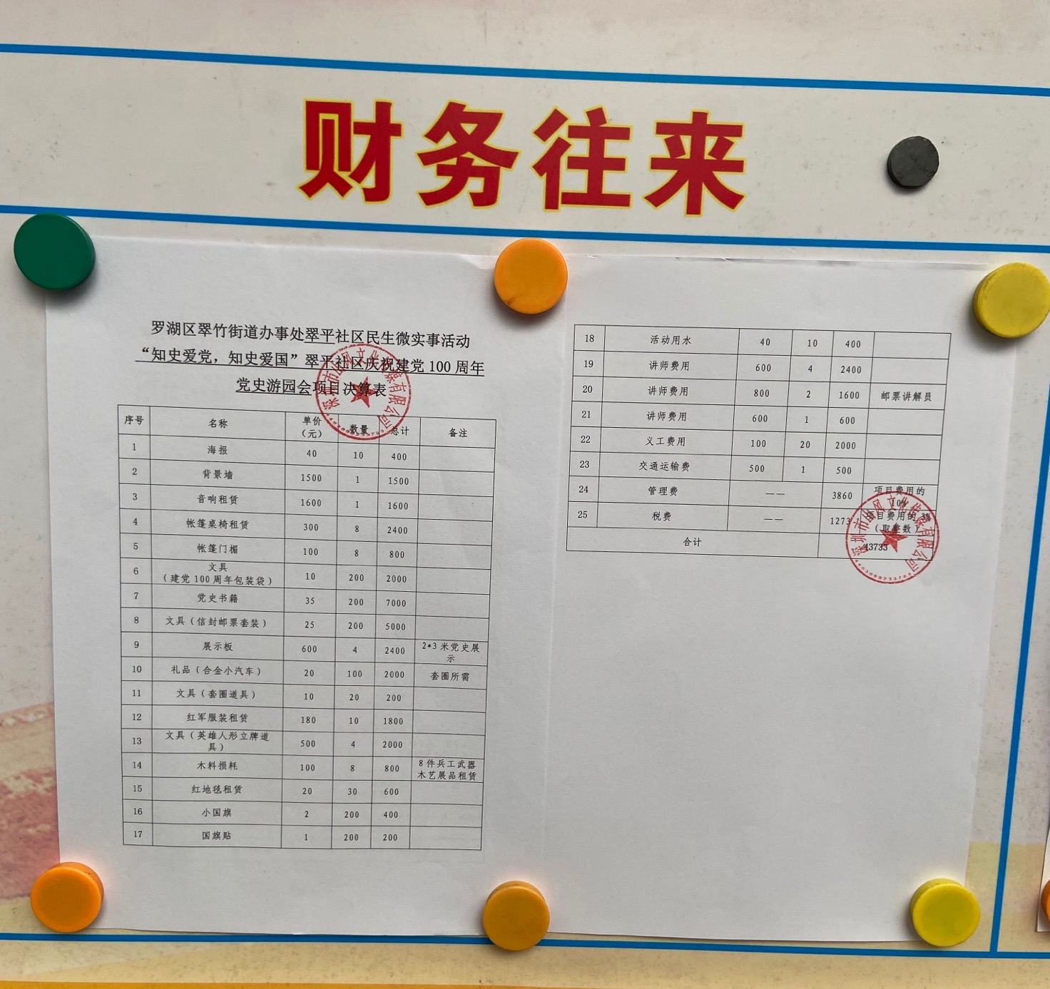 翠平社区2021年民生微实事项目《“知史爱党·知史爱国”社区庆祝建党100周年党史游园会》活动财务公示