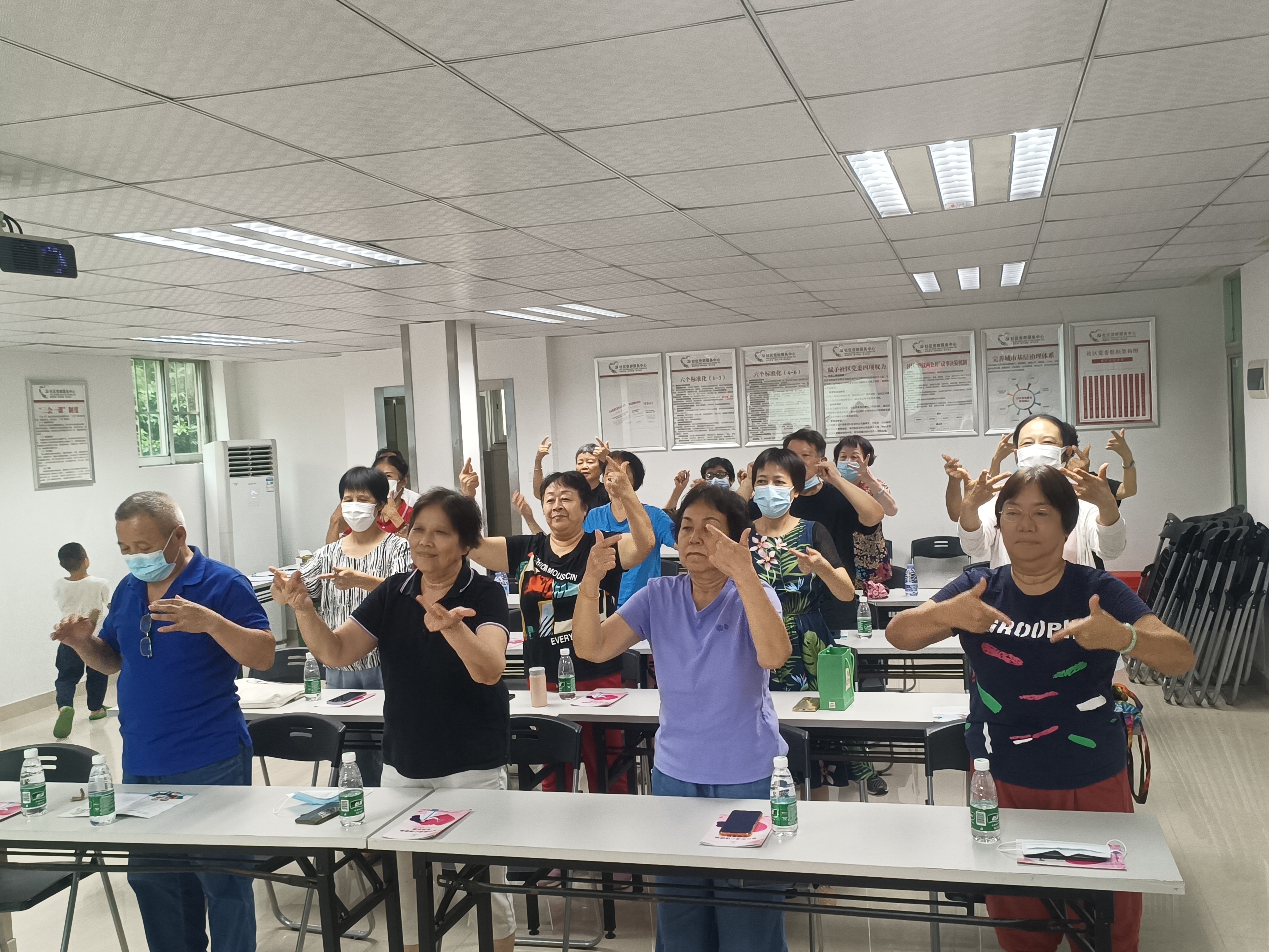 此次讲座邀请了中国劳动保障部:催眠教师 、音乐治疗师、肢体治疗师 ——陈伟玲老师授课。课堂上陈老师用通俗易懂的语言为长者们讲解了如何防治老年人因疫情可能出现的各种心理疾病;介绍了日常解压与心理保健的小技巧,结合音乐疗愈操指导老年人进行自我调适、放松身体,鼓励长者们走出家门,广交朋友,拓宽生活圈,培养多种兴趣爱好,活出自己想要的样子。