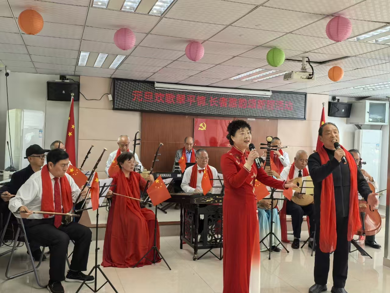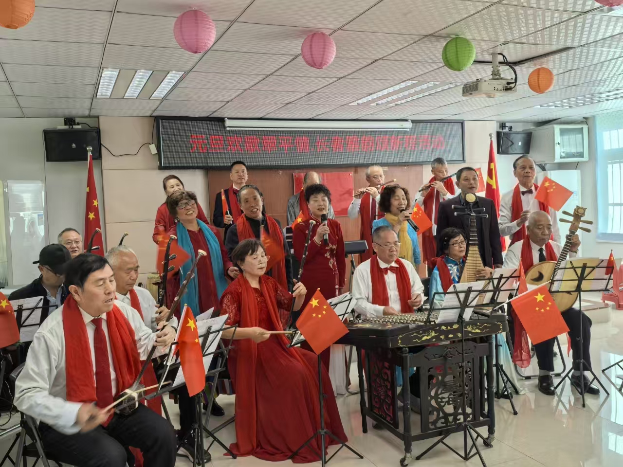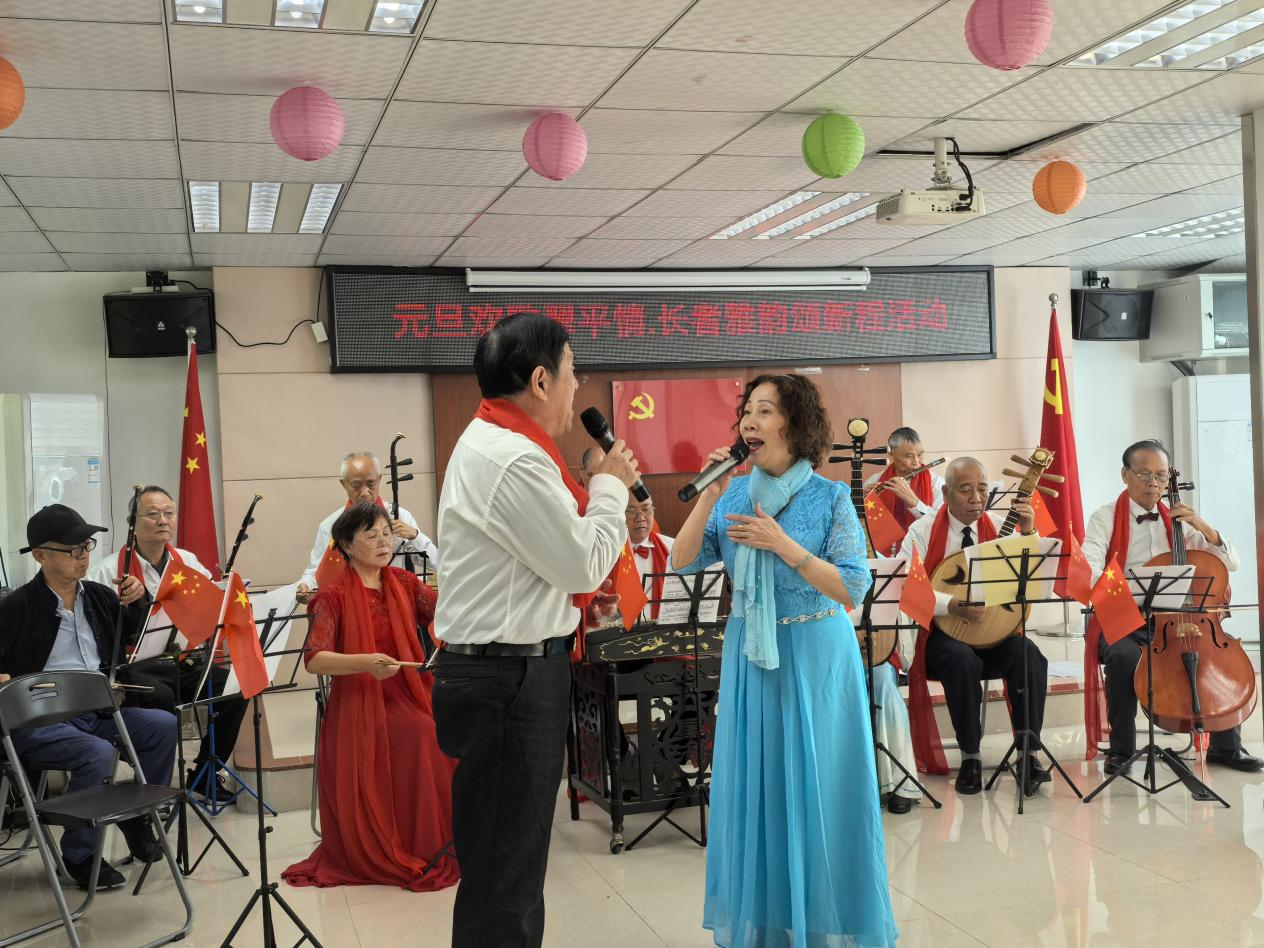 活动现场,在乐器的美妙伴奏下,一首首经典歌曲轮番唱响。《祖国之恋》深情款款,长者们用真挚的情感抒发着对祖国母亲的深深眷恋,那婉转的旋律仿佛诉说着祖国的山川壮丽与岁月峥嵘,让在场的每一个人都沉浸在浓浓的爱国情怀之中。《双脚踏上幸福路》轻快的节奏瞬间点燃了现场气氛,歌声中洋溢着对美好生活的向往与追求,仿佛带领大家踏上了充满希望的新征程,台下观众也不禁露出会心的笑容,跟着节奏轻轻哼唱。当《共筑中国梦》的激昂旋律响起,全场气氛达到高潮。长者们精神抖擞,歌声铿锵有力,将对国家繁荣昌盛的美好祝愿融入每一个音符,展现出社区居民对实现中华民族伟大复兴中国梦的坚定信念和积极参与的热情,赢得了阵阵热烈掌声。《喜事好运滚滚来》更是将新年的喜庆氛围推向极致,欢快的歌声、灵动的乐器声交织在一起,传递着对新一年的美好期盼,让现场充满了欢声笑语。此次活动共有 13 首歌曲依次唱响,每一首都饱含着社区长者们对生活的热爱和对新年的祝福。