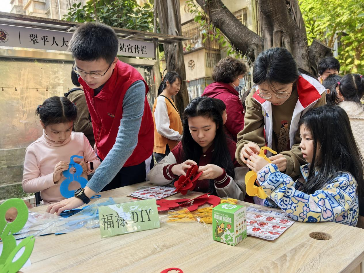 活动现场人头攒动,热闹非凡,处处洋溢着浓浓的节日氛围,各类传统民俗活动摊位有序分布,吸引居民纷纷驻足参与。猜灯谜区域,五彩谜面纸条随风摇曳,居民们独自思考或与亲友探讨,感受传统文化韵味;砸金蛋摊位前,孩子们兴奋得小脸通红,高举锤子砸向金蛋,清脆响声与欢笑声交织,童趣满满;福字拓印区,社工和志愿者耐心指导居民拓印,大家将美好期许融入红纸;福禄娃 DIY 手工摊位上,家长和孩子紧密配合,用彩纸、彩笔创作出憨态可掬的福禄娃,亲子默契不断升温;最受欢迎的煮元宵、吃元宵环节,社工与老年人协会成员把热气腾腾的元宵端到居民手中,大家围坐分享生活趣事,邻里间互帮互助、亲切交流,陌生面孔变得熟悉,社区凝聚力不断增强 。