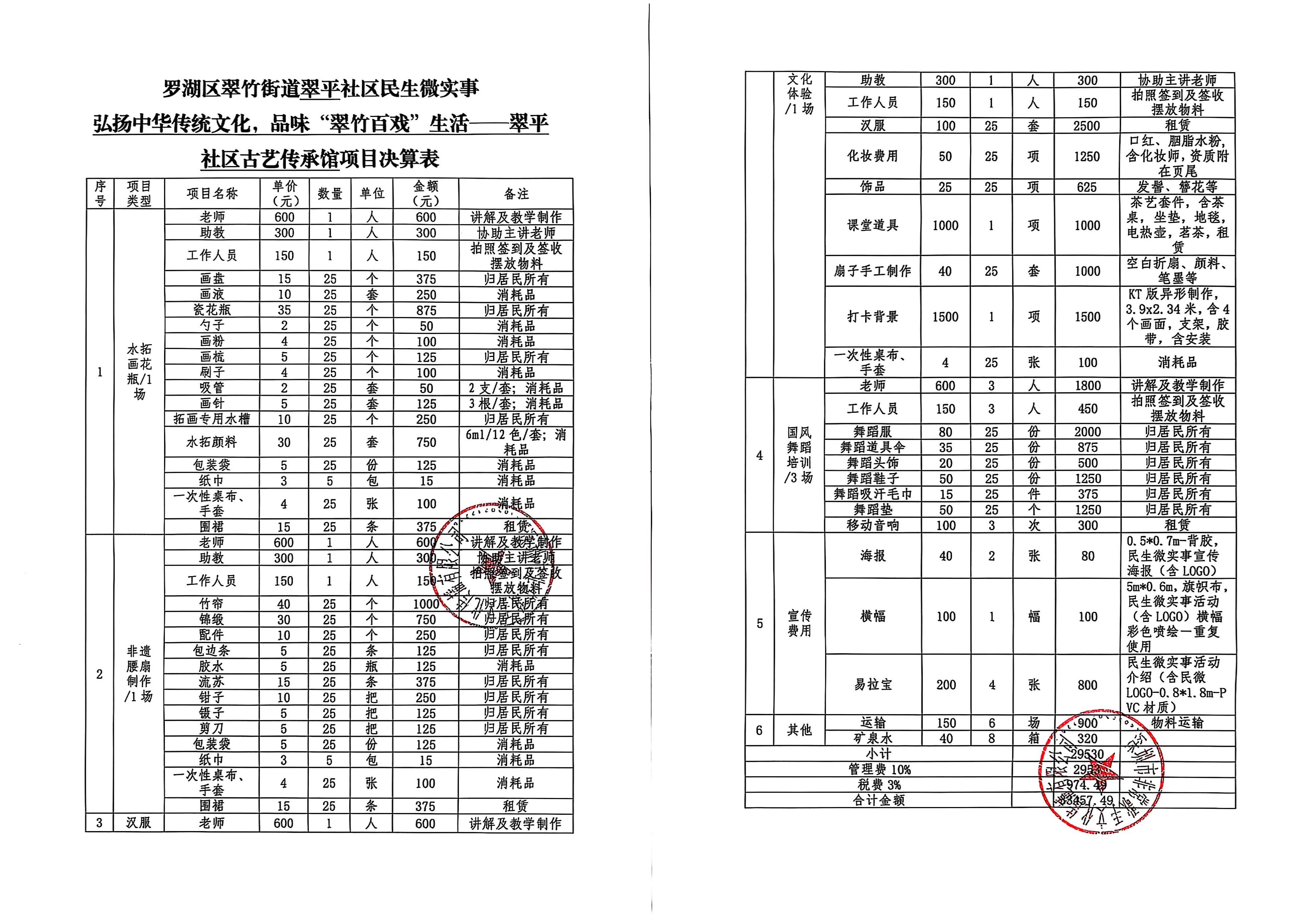 翠平社区2025年民生微实事项目《弘扬中华传统文化,品味“翠竹百戏”生活——翠平社区古艺传承馆项目》财务公示
