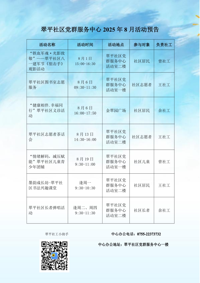 翠平社区党群服务中心2025年8月活动预告