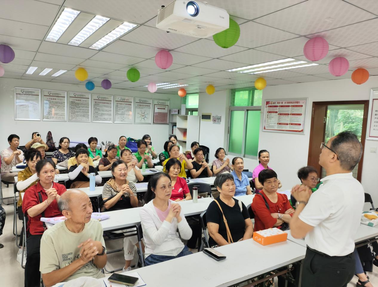 活动伊始,余社工向居民们介绍了活动目的,回应大家对 “记性变差” 的担忧。接着,深圳市保健办保健二部主任医师、医学博士周文斌带来认知健康讲座。他从饮食、运动、睡眠、情绪四方面展开,结合老年群体生理特点,推荐 “低盐高纤” 饮食方案、适合老年人的轻柔运动,还分享改善睡眠、调节情绪的小技巧,内容通俗易懂,居民纷纷用笔记录要点。讲座后,互动问答环节掀起热潮。居民们积极提问,周博士耐心解答 “如何通过饮食预防记忆力下降”“运动强度如何把握” 等问题。现场护士团队为居民提供血糖、血压、血氧饱和度检测服务,医生则一对一解读体检报告,针对异常指标给出健康建议,得到居民一致好评。