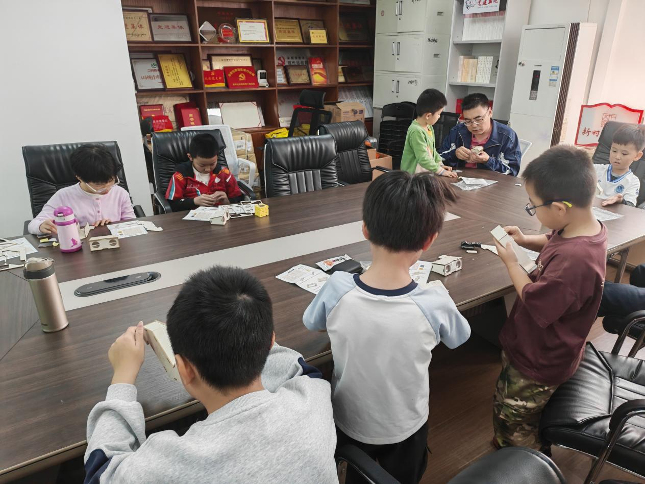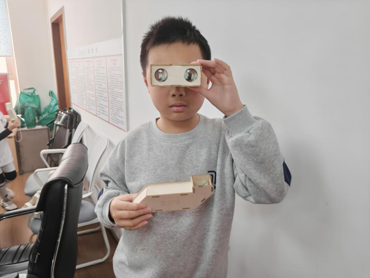 活动接近尾声时,每个孩子都成功完成了自己的作品,他们兴奋地拿着亲手制作的木头望远镜和潜望镜,互相展示、交流,有的孩子还迫不及待地用望远镜观察远处的景物,用潜望镜探索桌子下方的秘密。此次“光影魔术实验室”活动不仅让孩子们在轻松愉快的氛围中学习了科学知识,更激发了他们对科学探索的兴趣和热情,为他们的成长之路点亮了一盏探索科学的明灯。