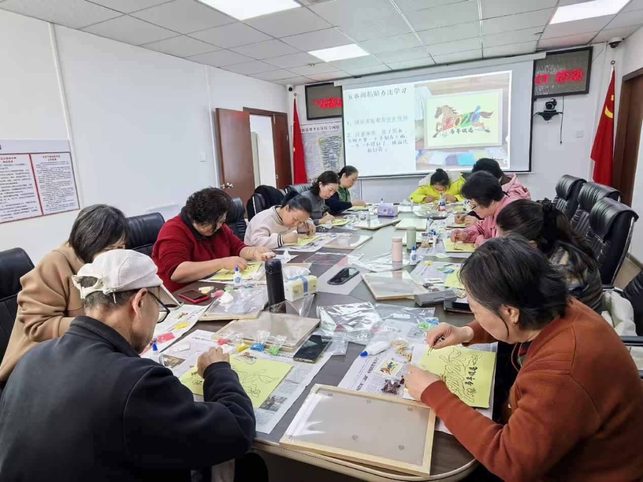 活动伊始,余社工以亲切易懂的语言,为长者们讲解腊八节的起源、习俗及文化寓意,从喝腊八粥、腌腊八蒜到祈福纳祥的传统,让大家在重温民俗中感受浓厚节日氛围。随后,她展示五谷粘贴画材料包,逐一介绍红豆、黄豆、小米等杂粮特性,以及相框、胶水、底稿等工具的使用方法,结合成品演示了配色、粘贴、修饰等关键步骤,针对粘贴不牢、色彩搭配等问题给出建议,鼓励大家大胆创作。本次底稿均为线稿样式,以马为主题呼应马年,线条清晰、难度适中,适配长者操作,既能锻炼眼力、手部精细动作,又能活化脑部思维,实现手脑协同。讲解结束后,长者们迅速投入创作,余社工与王社工一同巡回指导,耐心协助动手能力较弱的长者整理材料、调整构图,及时答疑解惑,同时引导大家交流创作思路、分享腊八趣事与马年期许。现场氛围温馨和睦,长者们或专注选谷配色勾勒马的轮廓,或切磋技巧、互帮互助,欢声笑语不断。经过一个小时的精心制作,一幅幅寓意“五谷丰登、马年吉祥”的作品陆续诞生,每一幅都饱含心意,承载着长者们对新年的美好祝福。