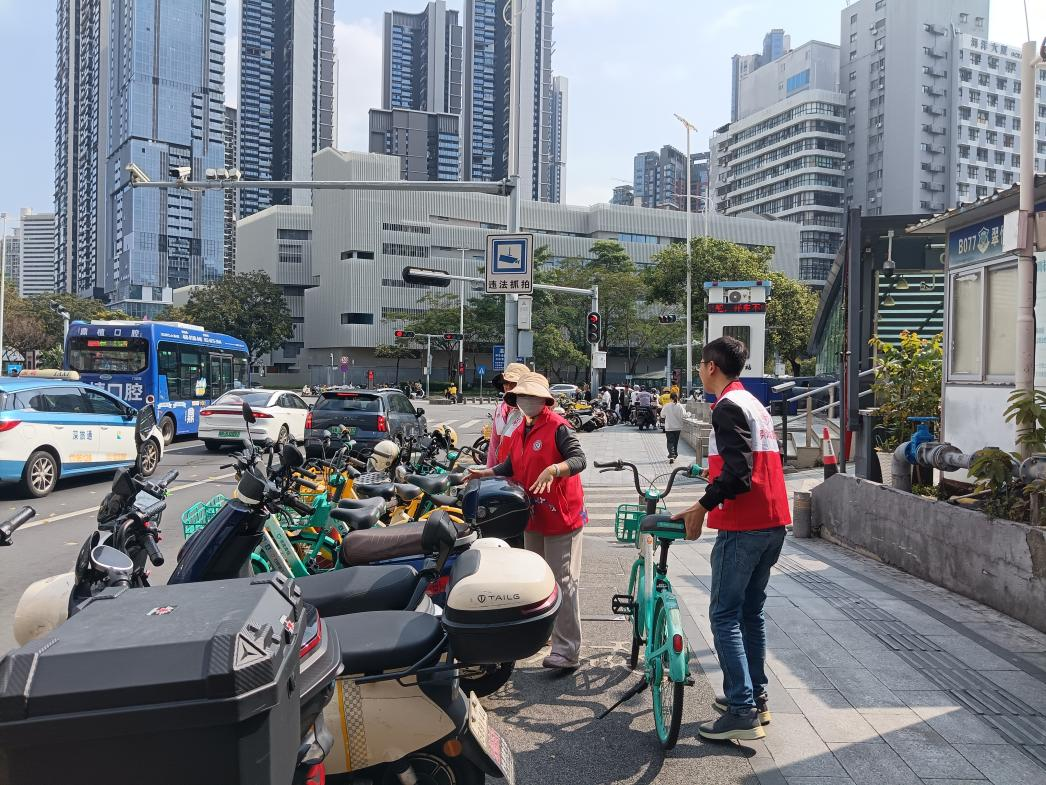 罗湖家园网讯:3月5日学雷锋纪念日,在翠平社区党委的指导下,翠平社区党群服务中心社工组织志愿者在地铁翠竹站 C、D 口开展文明引导志愿服务。志愿者们引导居民规范停放电动车,及时整理乱停乱放的单车与电动车,维护地铁口交通秩序。同时,针对前往市人民医院就医的居民,主动提供指引、协助通行等暖心服务,用实际行动解决群众出行 “最后一米” 难题。