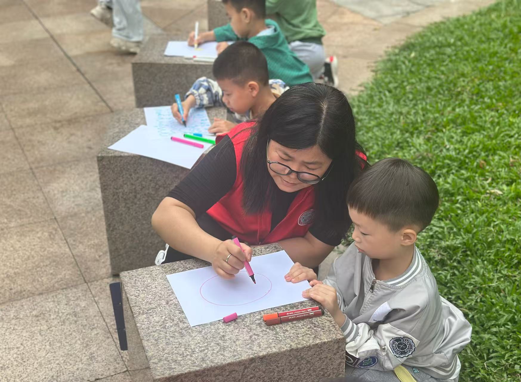 活动当日,小朋友们在老师与社区工作人员的带领下走进东湖公园。社区工作人员生动阐释世界地球日的内涵,告诉小朋友,地球是我们共同的家,只有把它保护好,我们住的地方才会又干净又漂亮,大家也能生活得更开心!随后,小朋友们手持画具,在湖畔草坪寻得创作天地,将对绿色家园的憧憬倾注于笔尖。画纸上,蓝天与森林相映成趣,清澈河流中游弋着五彩鱼儿,错落有致的生态楼宇间点缀着嬉戏的孩童。小朋友们边创作边交流:小朋友们用缤纷色彩勾勒出对宜居城乡的美好畅想,现场洋溢着童真与创意交融的热烈氛围。