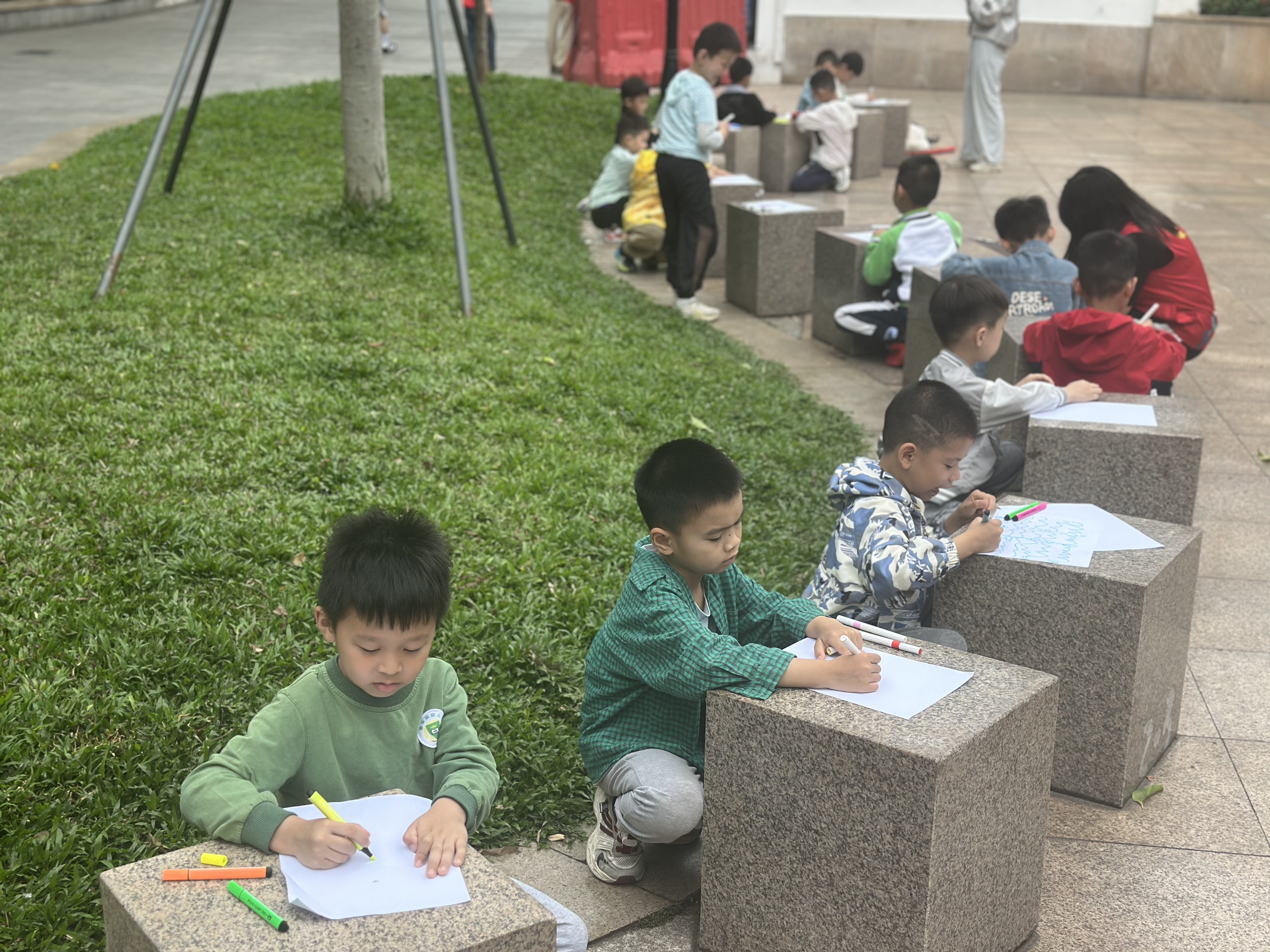 为深入推进“百千万工程”,在社区幼儿期群体中厚植生态文明理念,4月29日,翠竹社区携手翠华幼儿园开展“世界地球日”绿色生态城市研学活动,15名萌娃化身“环保小卫士”,用童真笔触绘就生态蓝图。