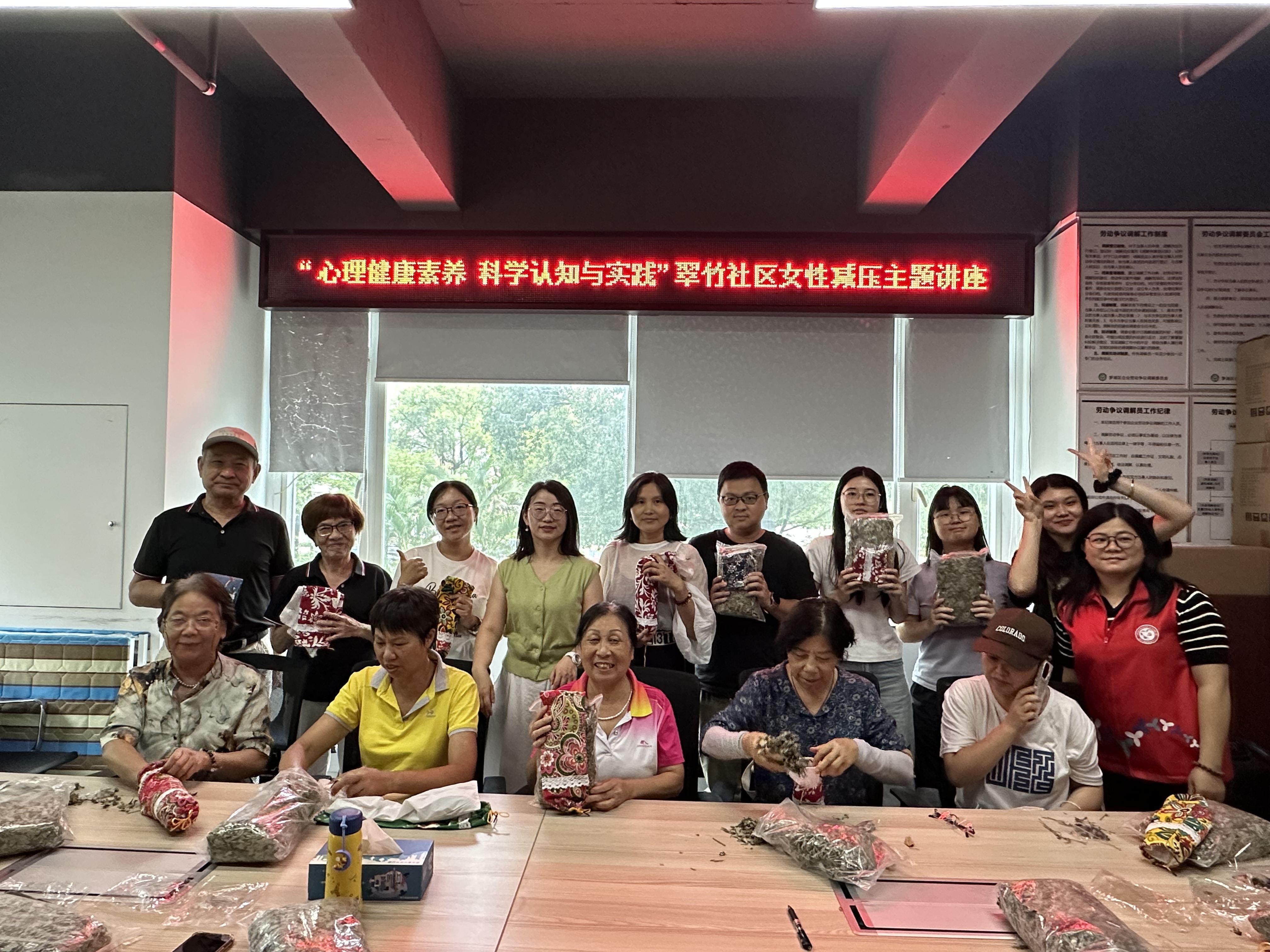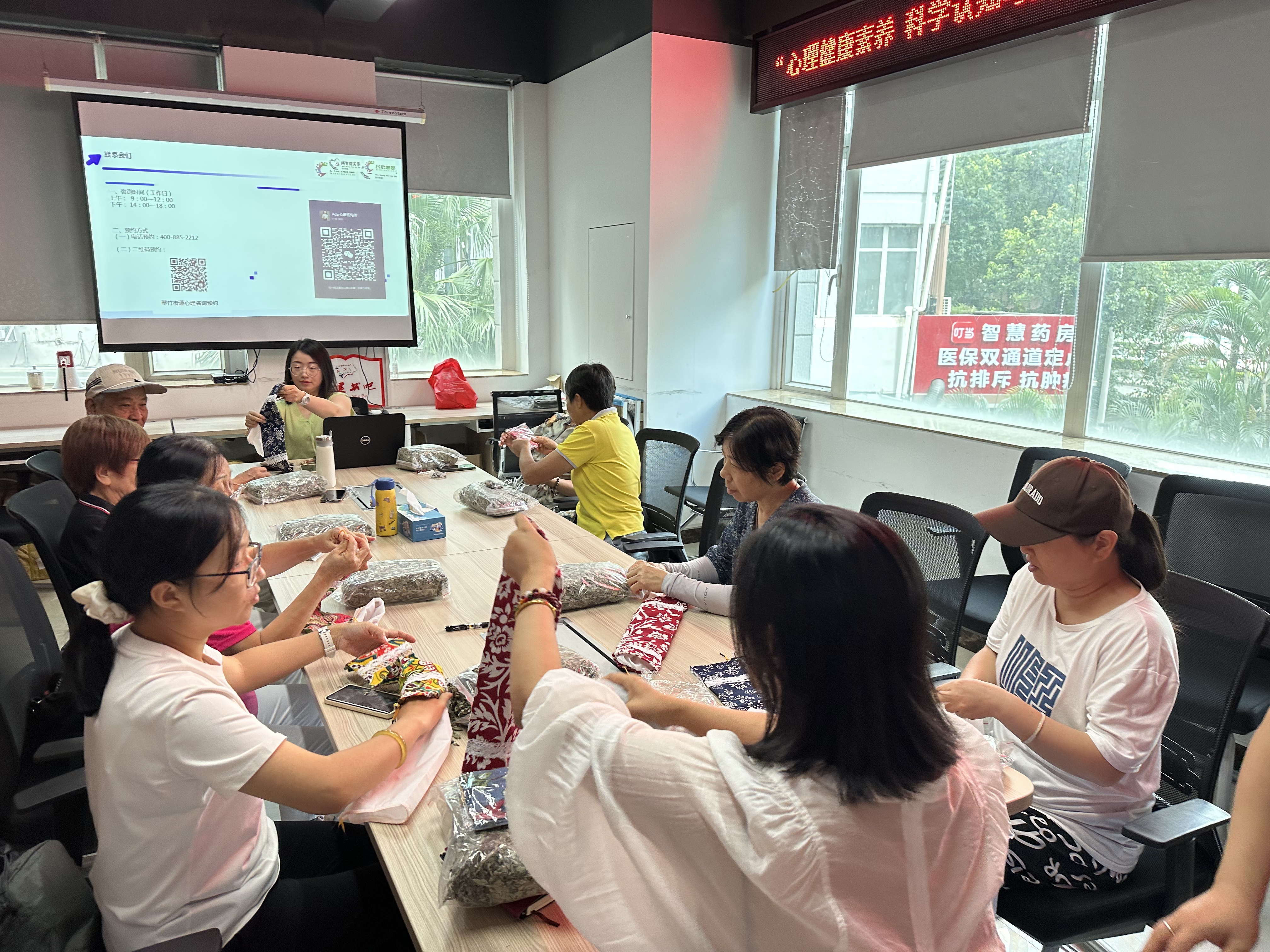 2025年6月24日,翠竹社区联合翠竹街道心理服务站在社区党群服务中心会议室开展女性减压主题讲座。此次活动将心理健康知识科普与DIY艾草枕制作巧妙结合,吸引了社区15名居民热情参与。